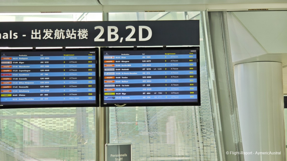 Une fois terminé, direction le T2B. L'enregistrement ouvre dans 1h, mais je connais l'enregistrement : contrairement à Air France, les gens commencent à faire la queue 30 min avant le début de l'enregistrement.