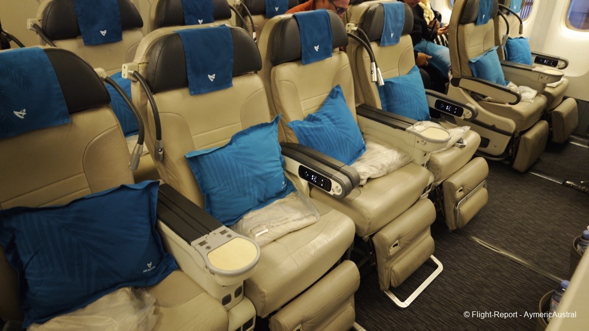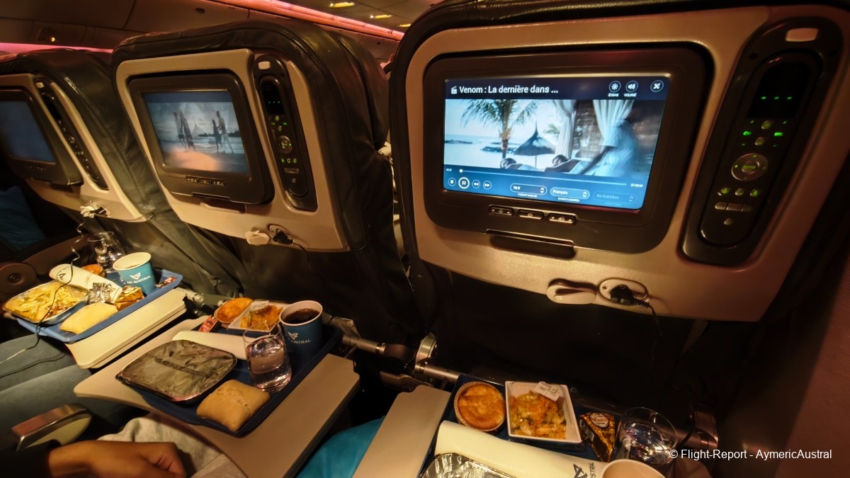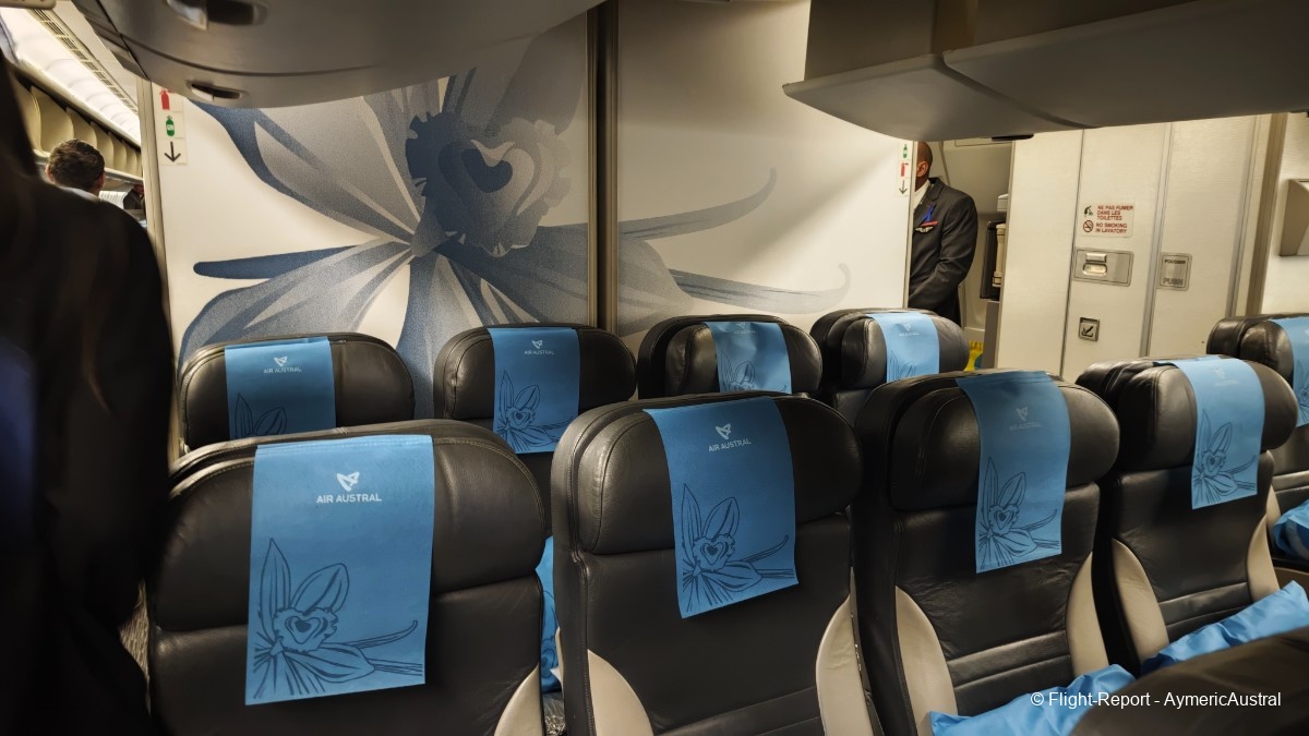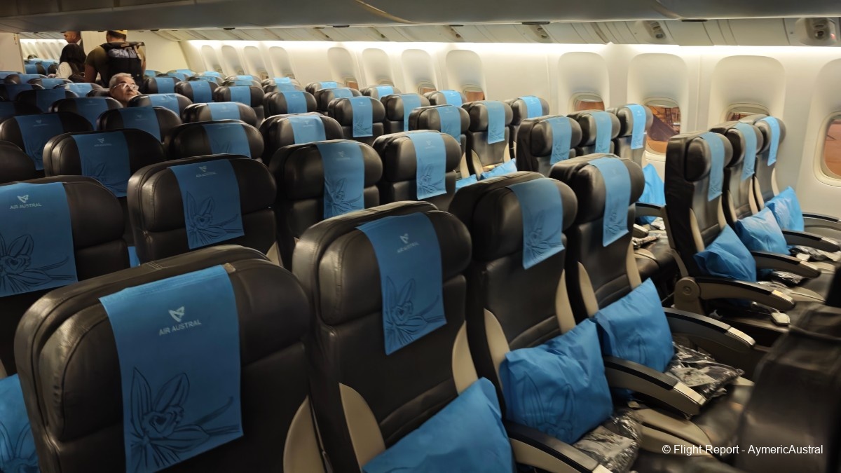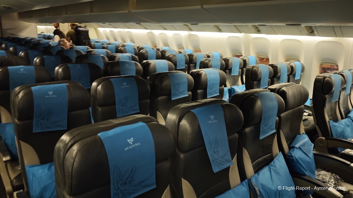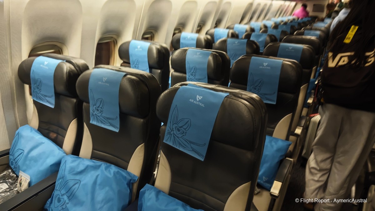 Bienvenue à bord de cet appareil, l'accueil est cordial avec le sourire ! Je n'en ai pas parlé lors de mes précédents FR, mais l'embarquement se passe en musique typiquement réunionnaise avec du Meddy Gerville ! On passera par la Club Austral, ainsi que la Confort.