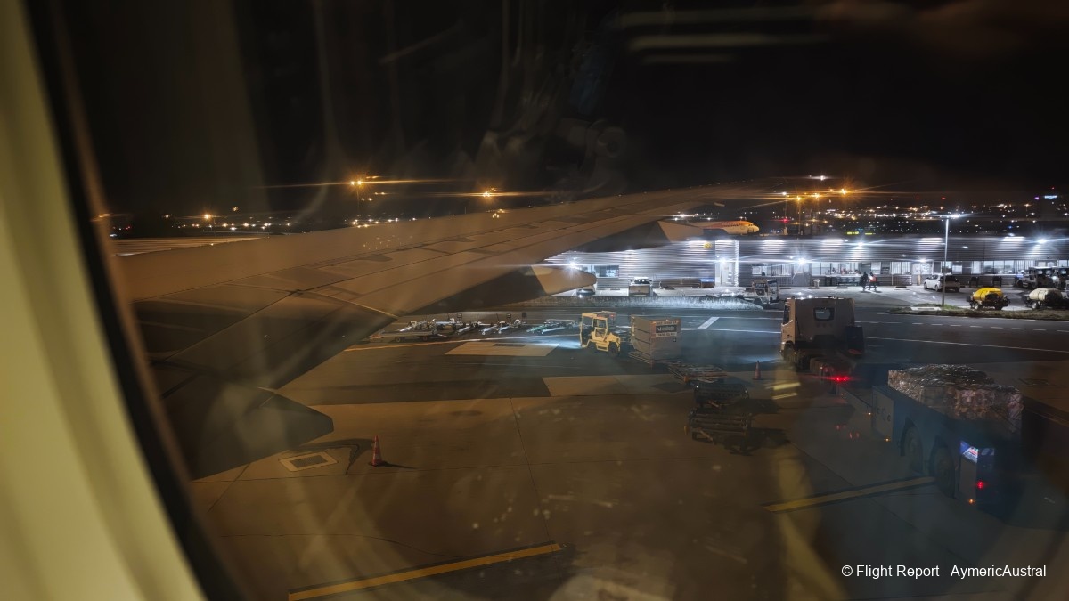 On repousse au final à 19h20, soit 20 min de retard sur notre heure initiale. Les 2 moteurs GE90 démarrent, et je ne sais pas si quelqu'un a la réponse, mais les démarrages moteur du GE sont très impressionnants à CDG, contrairement à La Réunion. Qu'est-ce qui fait que ça soit plus fort à certains endroits plutôt qu'à d'autres ?