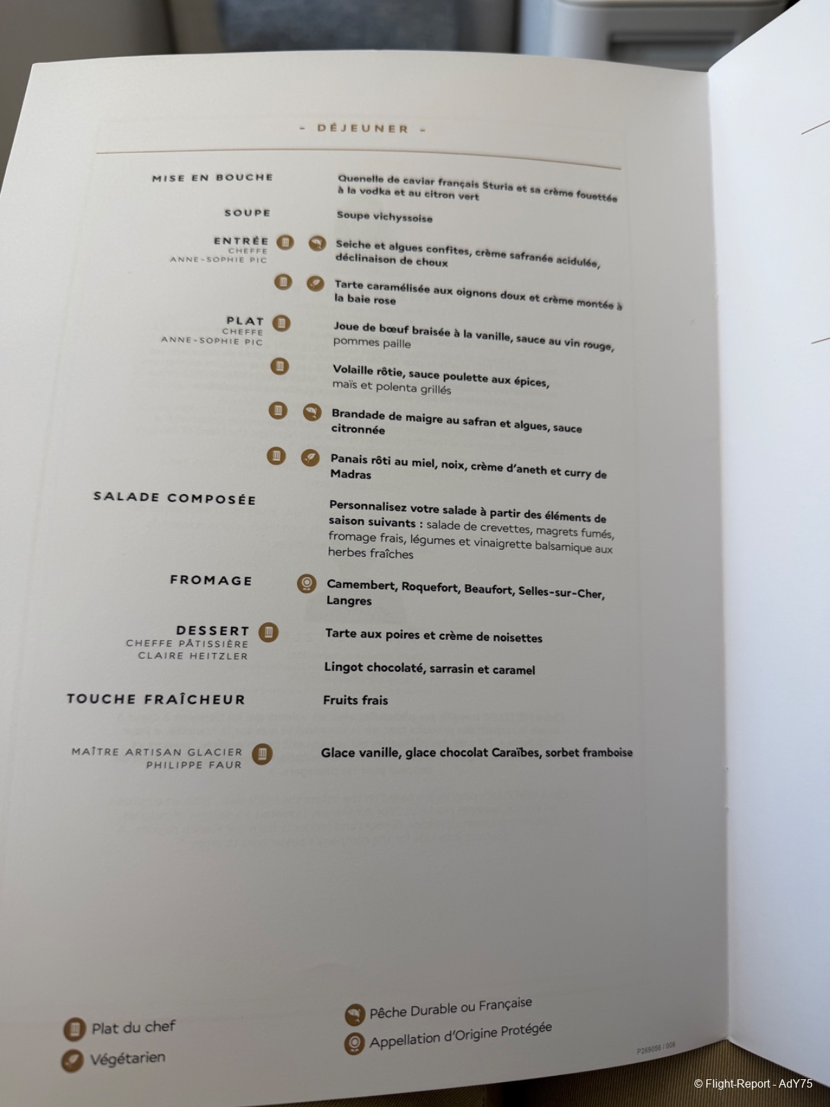 Alors qu’il me passe le menu nous discutons avec ma voisine (une personnalité très connue dont je tairais le nom par respect mais qui a été absolument adorable avec le mortel que je suis ainsi qu'avec tout l'équipage) de cette nouvelle cabine qu’elle a déjà pris plusieurs fois.