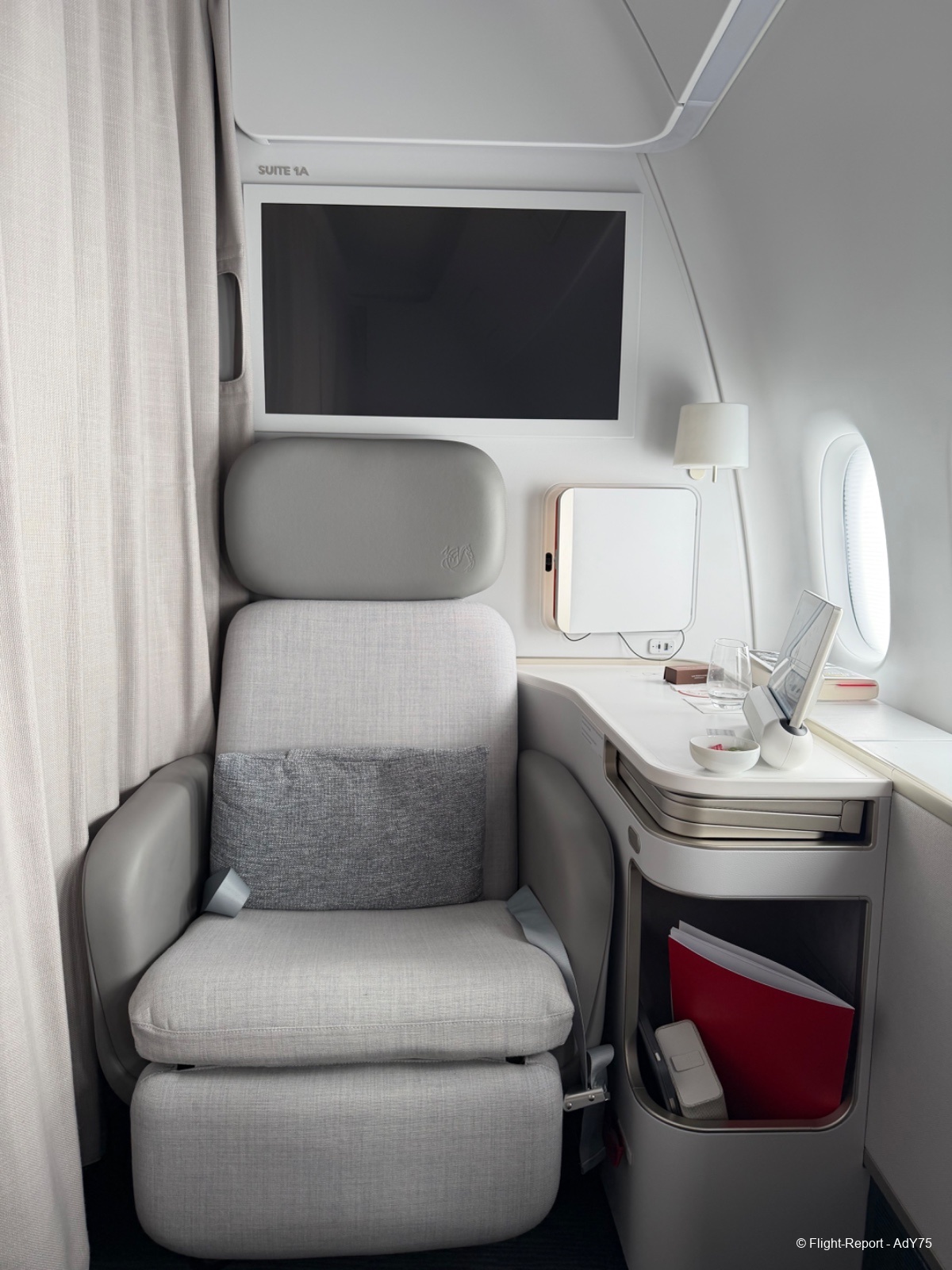 Avec des premiers vols dès l'été 2025 cette nouvelle cabine à fait l'objet d'une amélioration du protocole La Première qui vaut aussi pour les "anciennes" cabines, et c'est tant mieux ! Vous pouvez d'ailleurs retrouver cette ancienne cabine et le protocole actuel dans les récents et superbes FR de Chevelan et de SaintPieV (et dans le mien de septembre dans une moindre mesure).