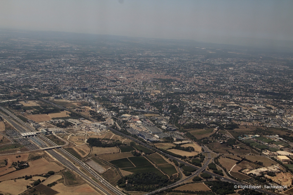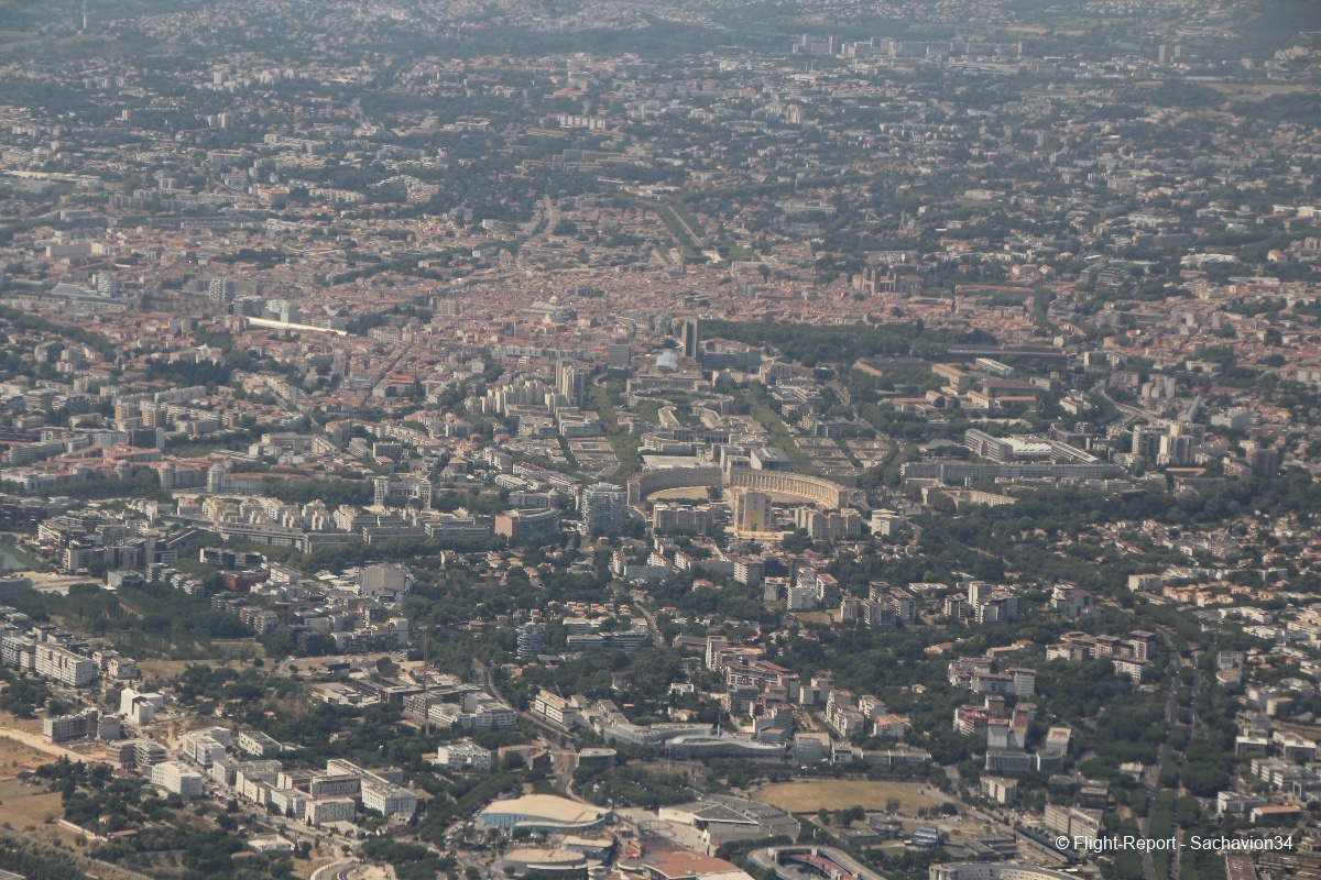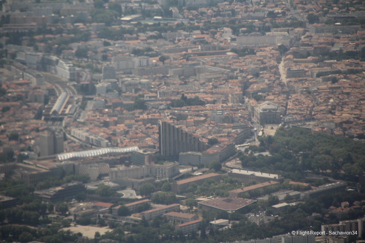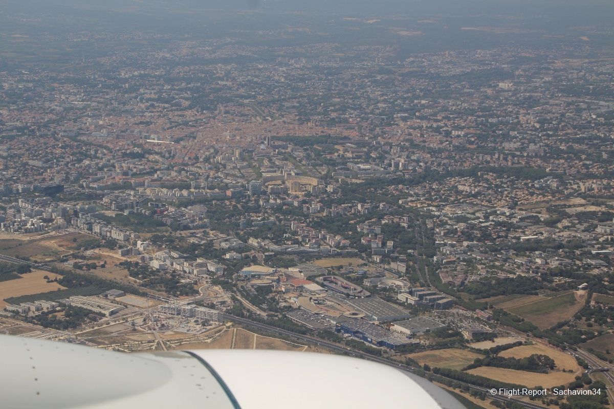 Quelques passagers dont ma copine avec qui je voyage sont assez stressés. Mais moi je suis très heureux car nous allons survoler Montpellier !
