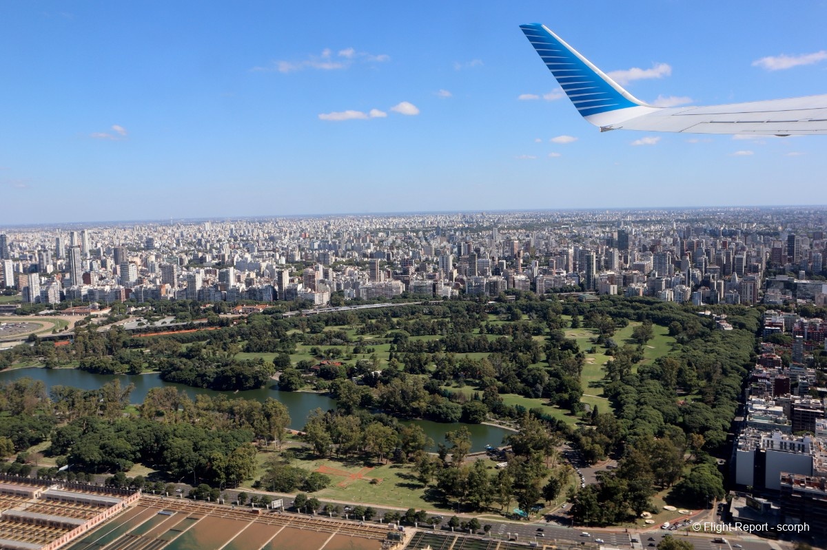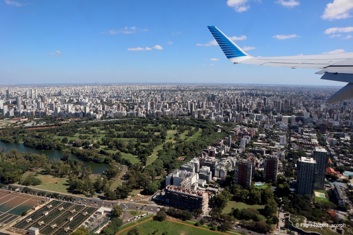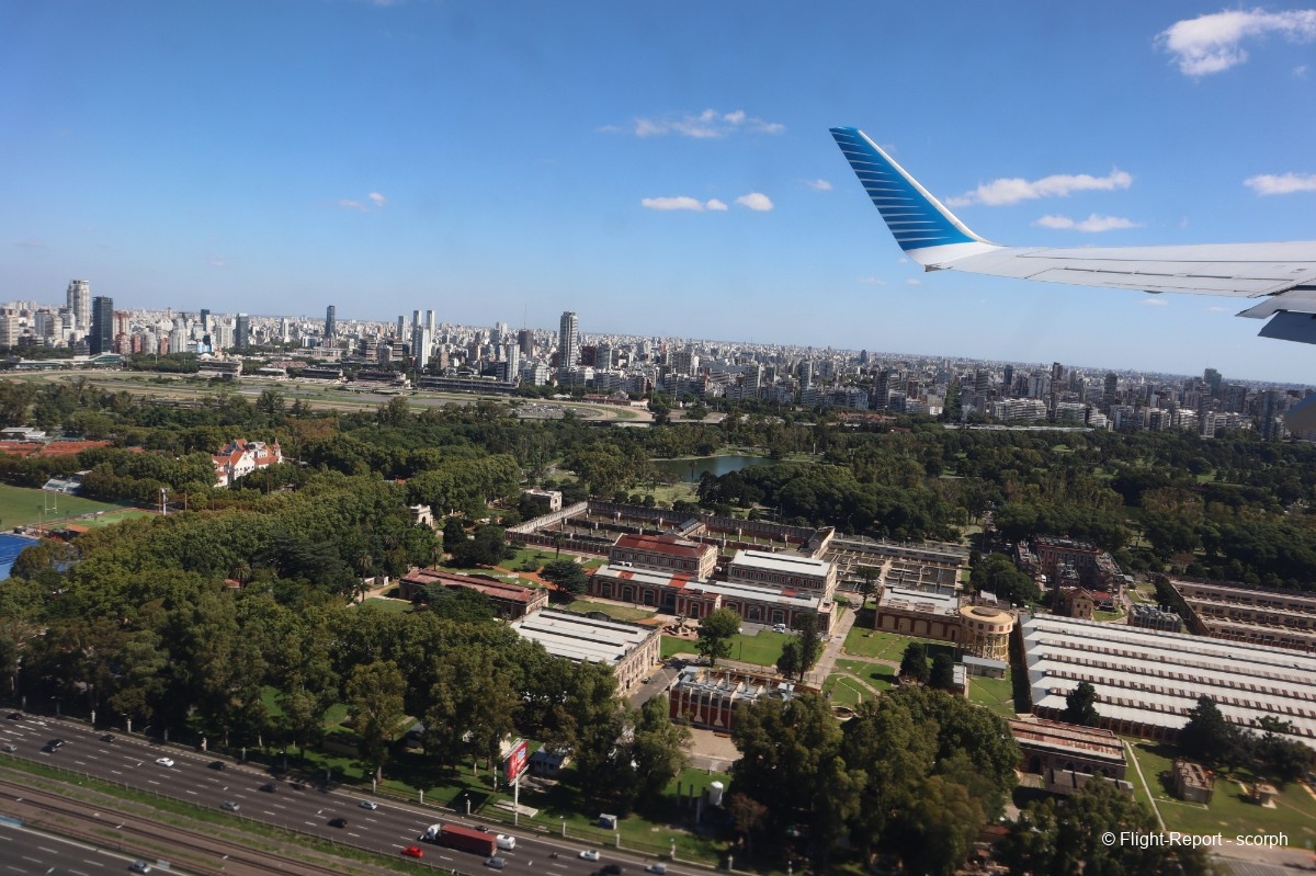 We had to wait a few minutes for another aircraft to depart ahead of us before we could line up. Once cleared, our pilots didn't waste any time spooling up the two CFM-56 engines to takeoff power; our Boeing quickly lifted off, climbing away with a beautiful view of the Belgrano and Palermo skylines.