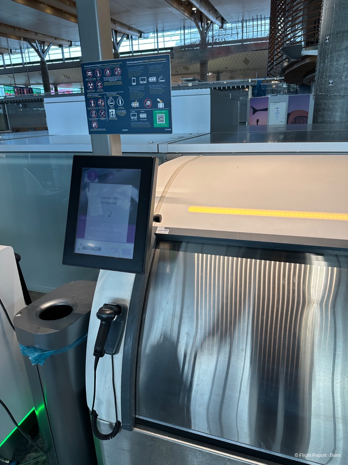 Nous trouvons très rapidement les bornes d’enregistrement en libre-service, puis juste derrière se situe le PIF, ce qui rend le parcours particulièrement rapide et efficace.