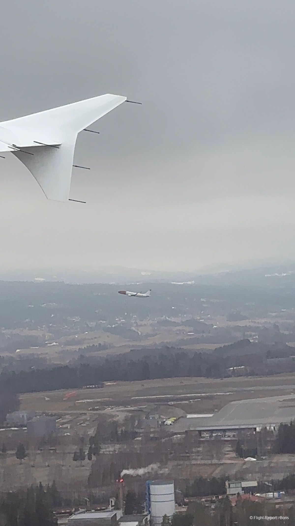 Nous repoussons ensuite et décollons avec 4 minutes d’avance. À noter un décollage simultané avec un appareil Norwegian, toujours sympathique à observer depuis le hublot.