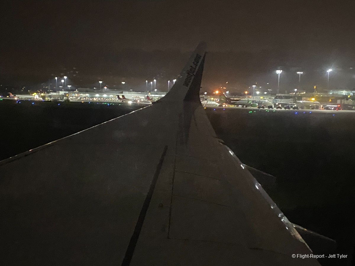 The WestJet Boeing 737-8MAX operating this flight "back the way I came" was C-GFJQ, an odd-ball in the WestJet fleet as it was built brand new in July 2023 for… Lynx Air! It flew for Lynx Air (as C-GJHK) until the airline ceased flying in February 2024. It found itself stored in Tucson, Arizona from late-February to late-August 2024 before being fully acquired by WestJet and re-registered before entering service with its current airline on December 1st 2024, just in time for the Christmas rush! By the time I flew on this aircraft it was just shy of its 1st Anniversary with WestJet!