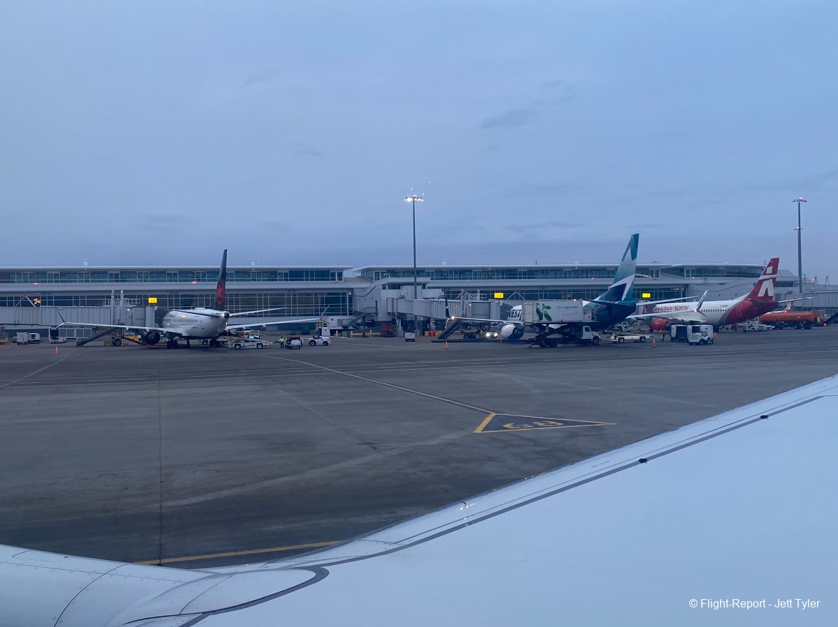 We landed on time in Edmonton Airport, it was dull and cloudy but the morning rush at the Airport was well underway. We parked up on stand completing a line-up of Boeing 737s that included two other Boeing 737-8MAX from Air Canada & WestJet as well as a Boeing 737-300 from Canadian North.