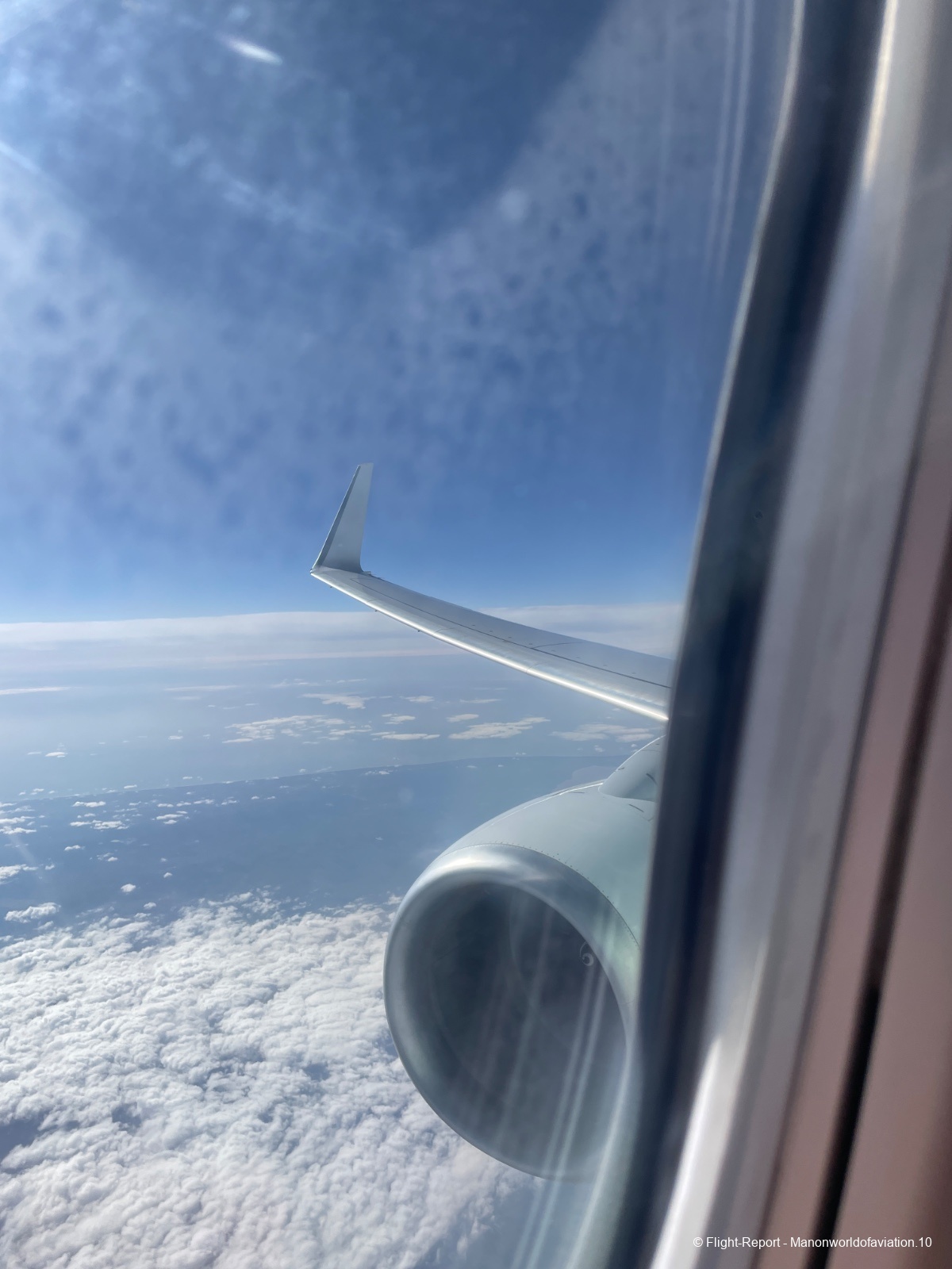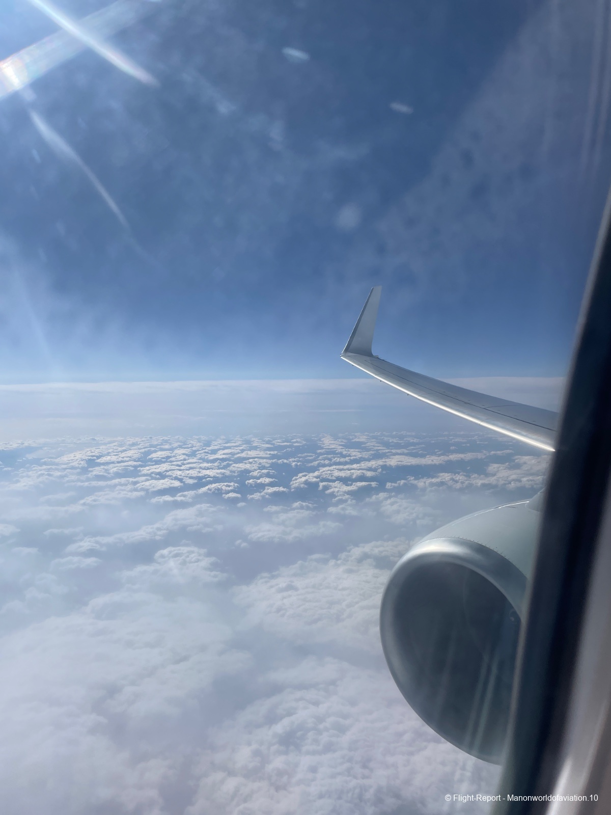 Traversée des nuages et direction les 35 000ft pour la vitesse de croisière, assez couvert au début mais plus tard le nuages sont de plus en plus éparpillés qui offre une superbe vue ⛅️seulement le soleil tapais pendant tout le vol c’était un peu lourd à la fin🥲