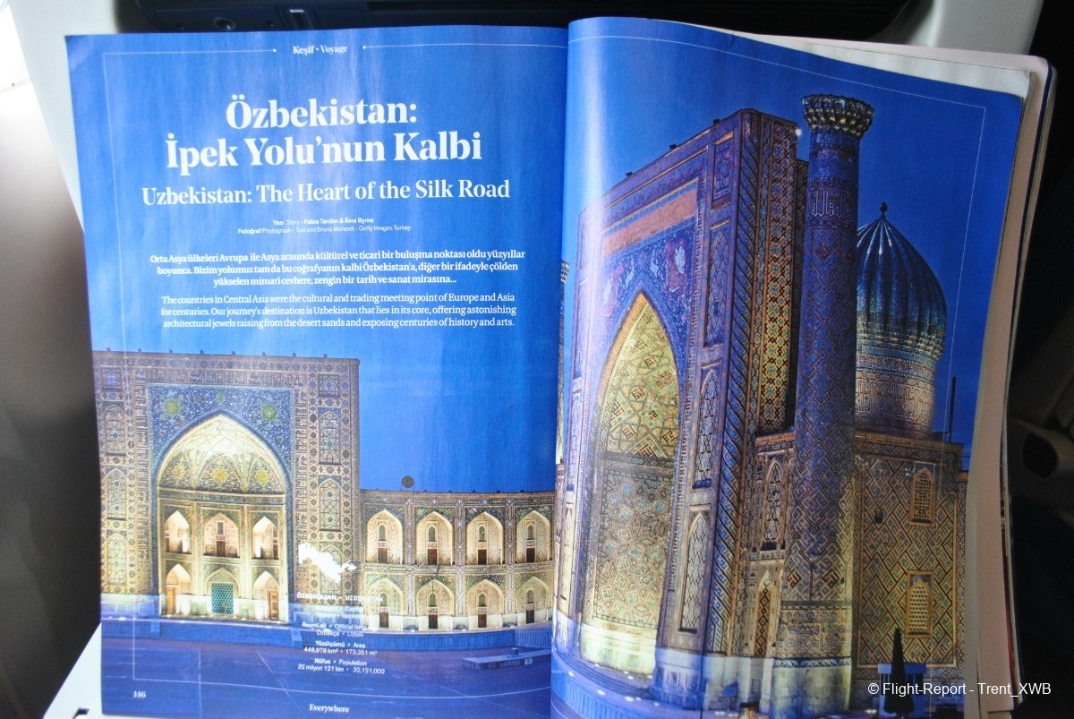 Some content of the inflight magazine: pages about Venezuela, a page about Uzbekistan, pages about TK's then-newest addition into cargo fleet - B77F, about then-flagship TK's lounge in ISL and about the TK's flight academy in Istanbul.
