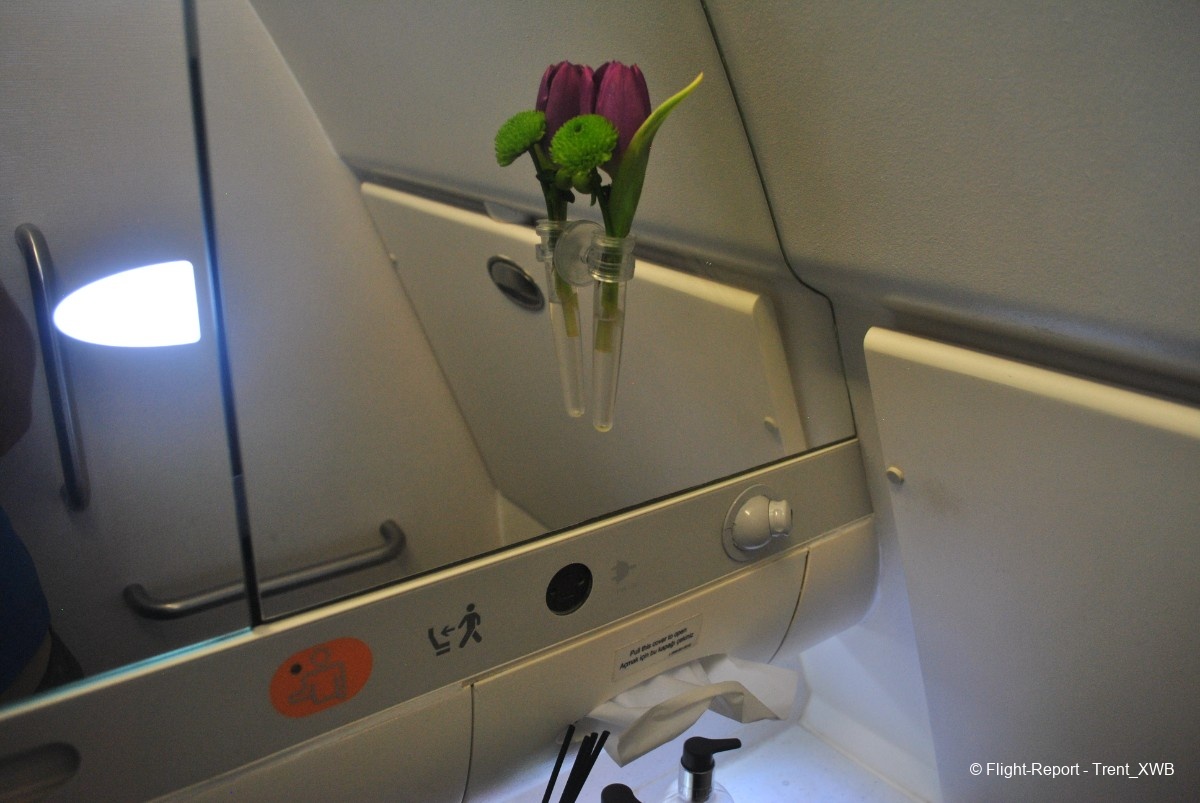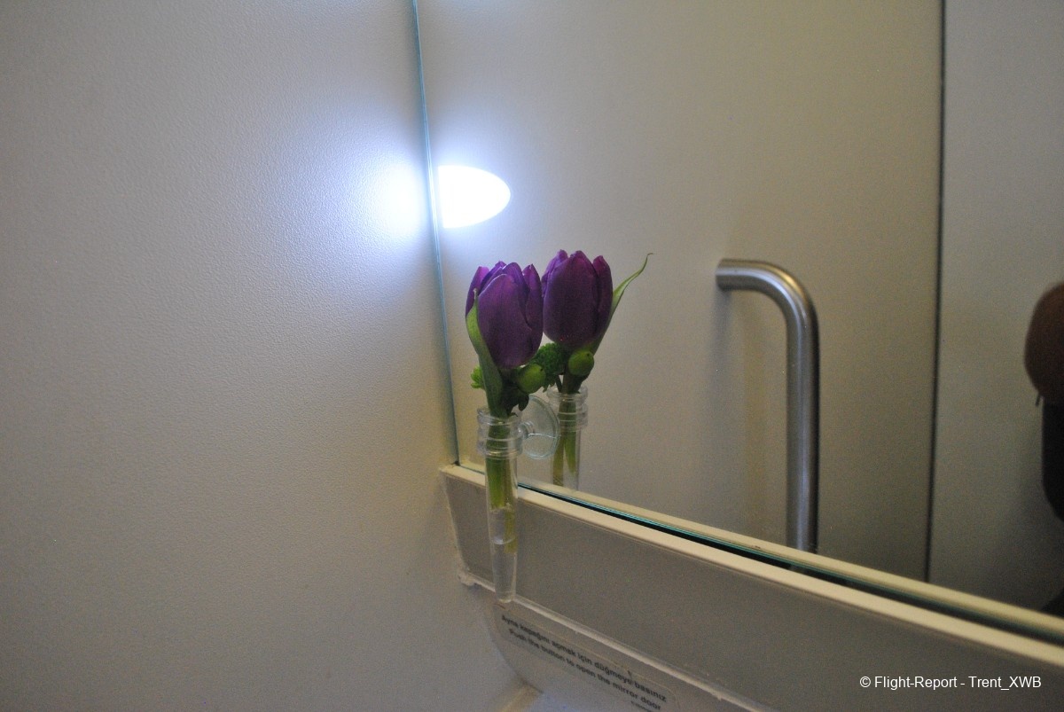 The lavatories are clean, well-stocked with cosmetics and nicely decorated.