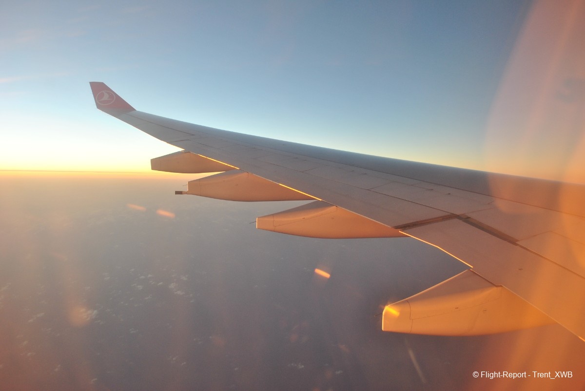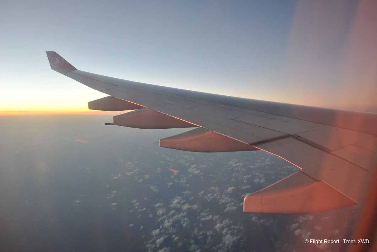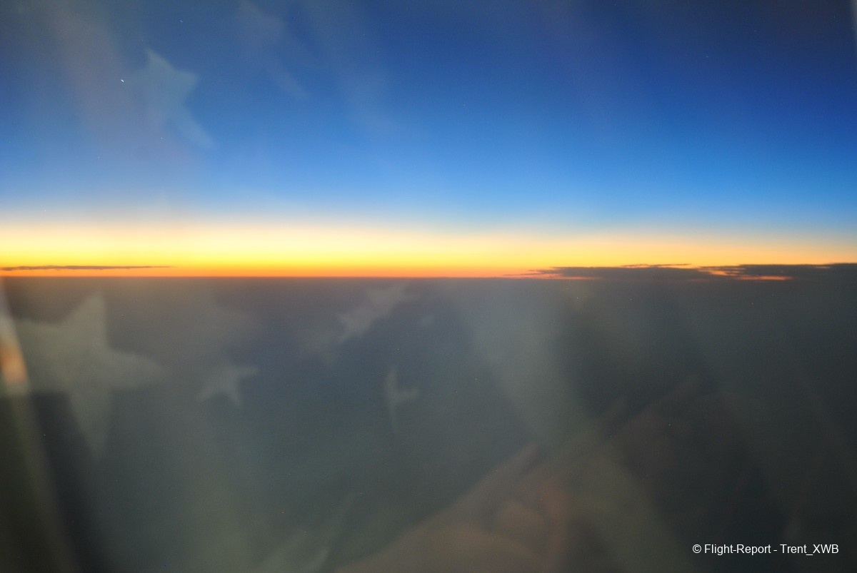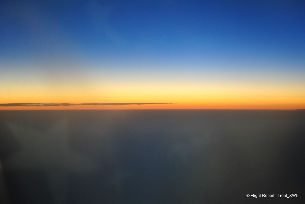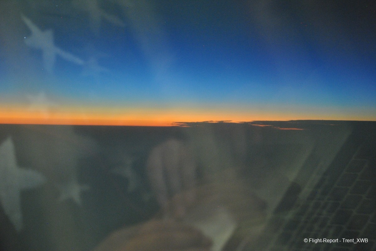 The daylight is quickly getting to an end as we're flying easwards over the Atlantics. The last rays of the sun on the wing.