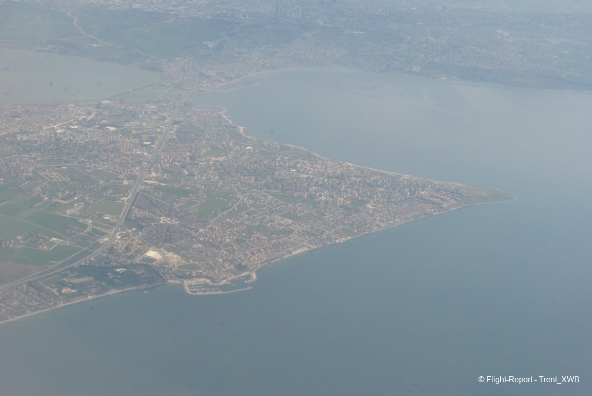 Descending over western Turkiye and overflying Buyukcekmece bay.