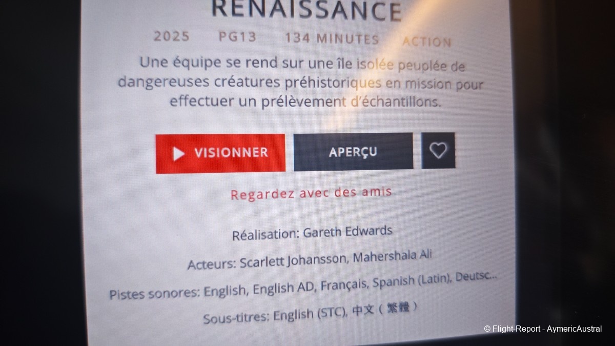 Un peu plus tard après le départ le premier service sera la distribution des kit écouteurs pour les écrans. Ce ne sont pas les meilleurs écouteurs qu'on peut avoir mais le son est correct et ils tiennent plutôt bien.