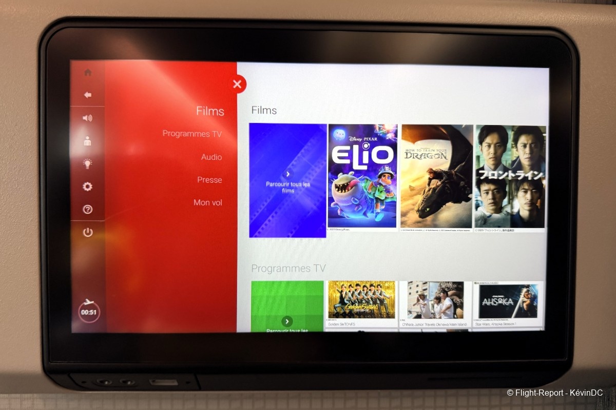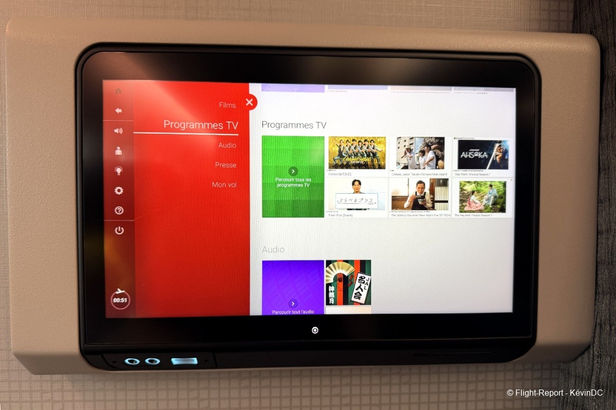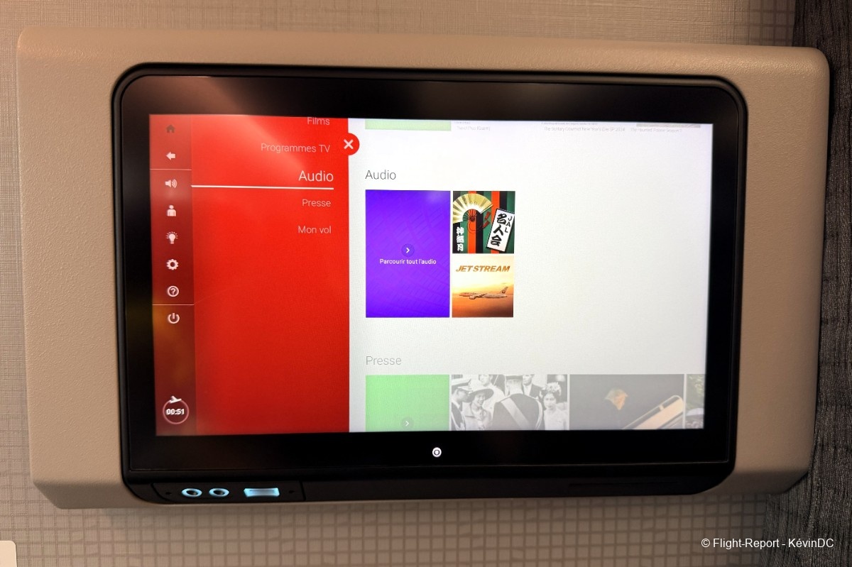seat recline and legrest controls are off to the side where you'll also find the in-flight entertainment remote.