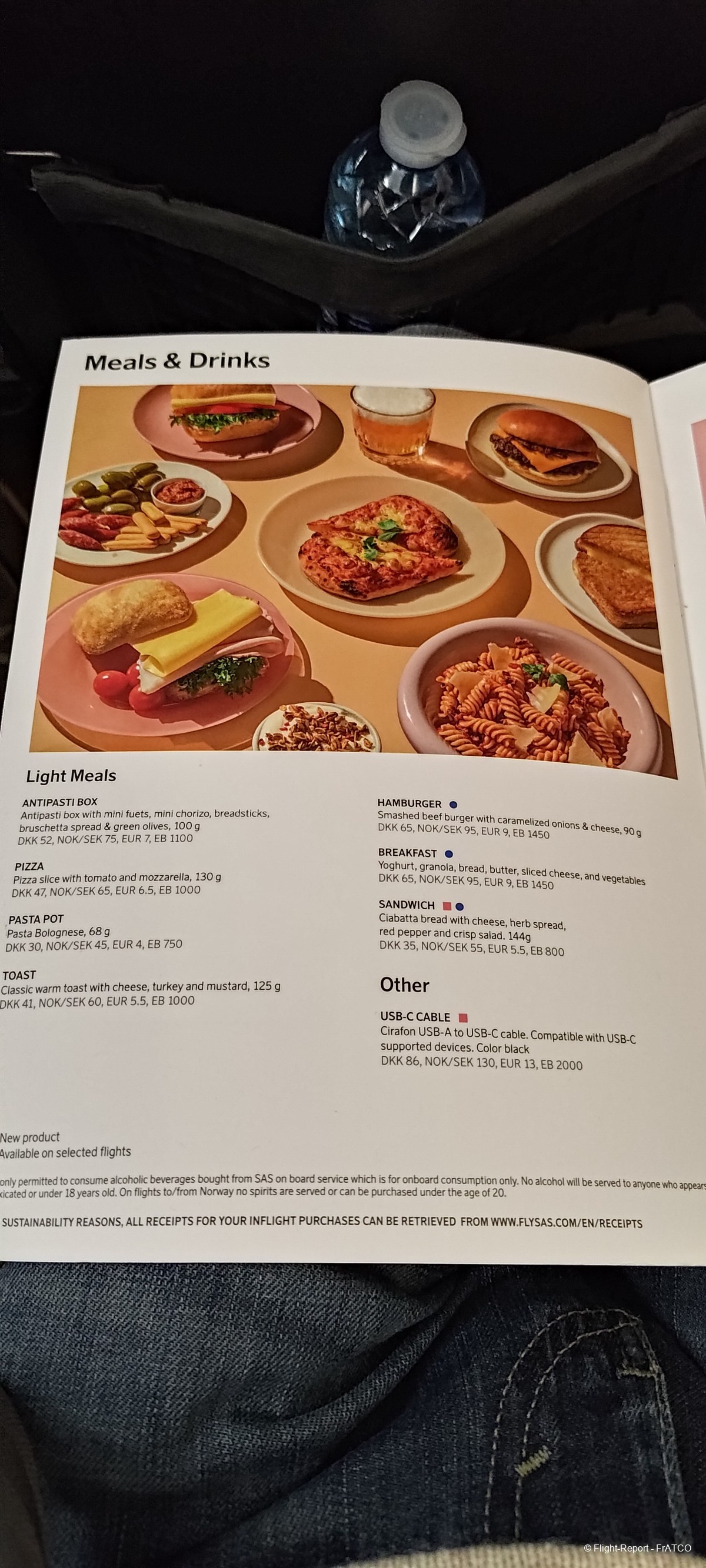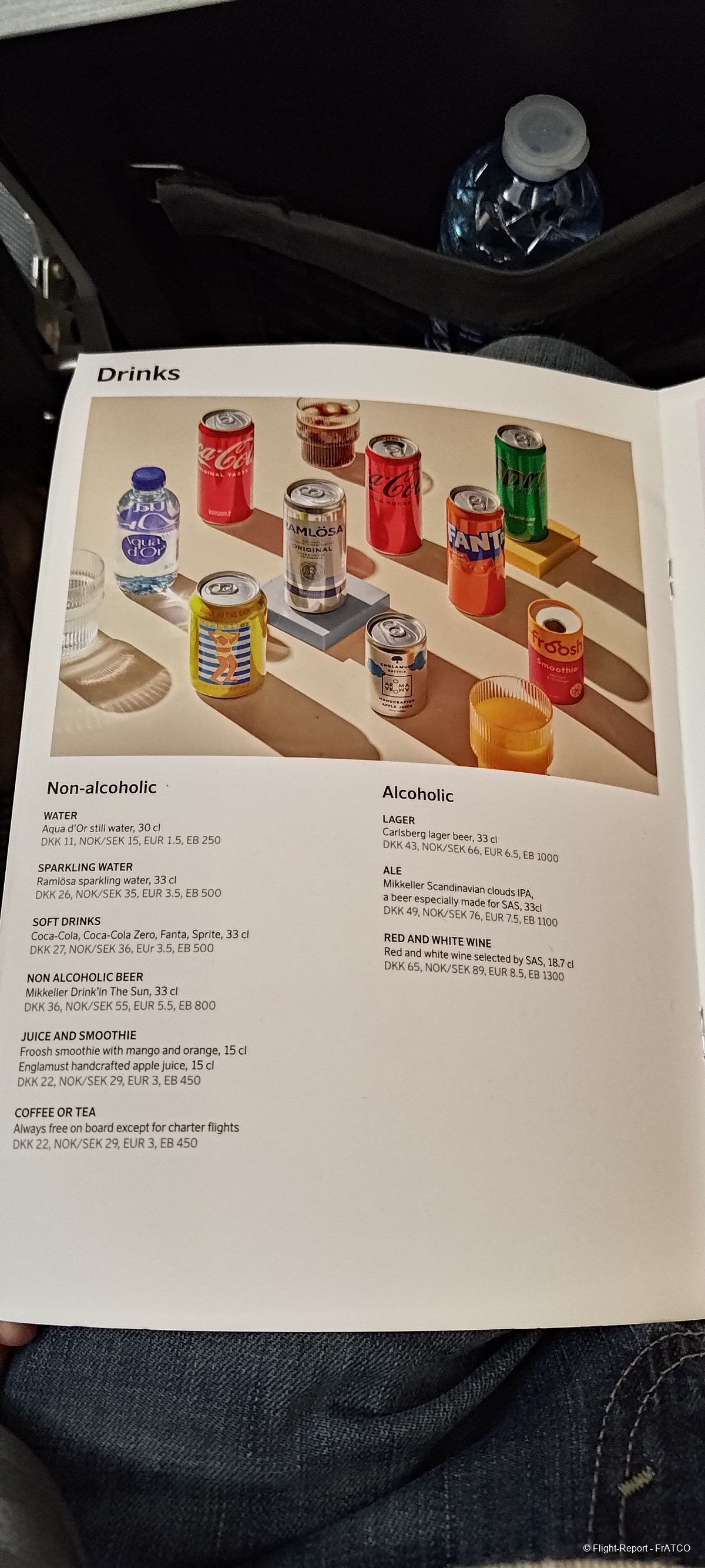 Pour nous ce sera eau et thé, ayant déjà dîné au salon. SAS a au moins la délicatesse d'offrir à tout le monde de l'eau, du thé ou du café alors que beaucoup de low cost sont pingres au point de ne même pas offrir un verre d'eau.