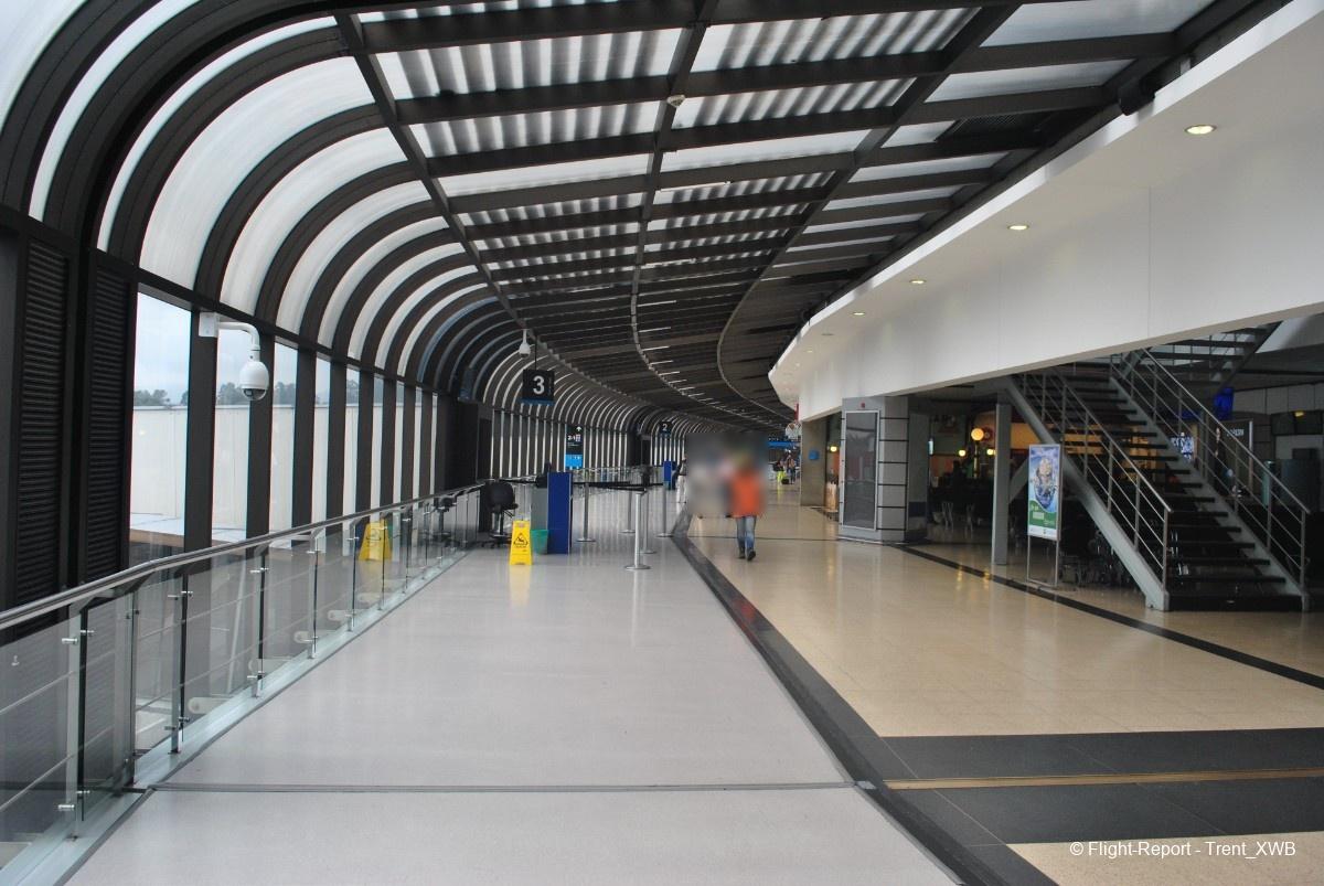 The SMR terminal from the outside. The airport is connected to the city centre by bus service.