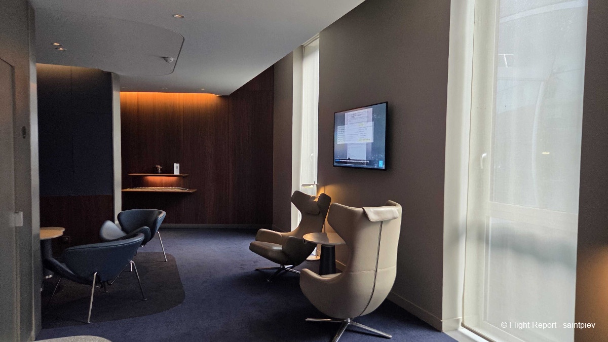 Une fois l'entrée passée, une hôtesse nous conduit au salon Ultimate qui se trouve tout de suite à gauche, une fois passés les portiques.