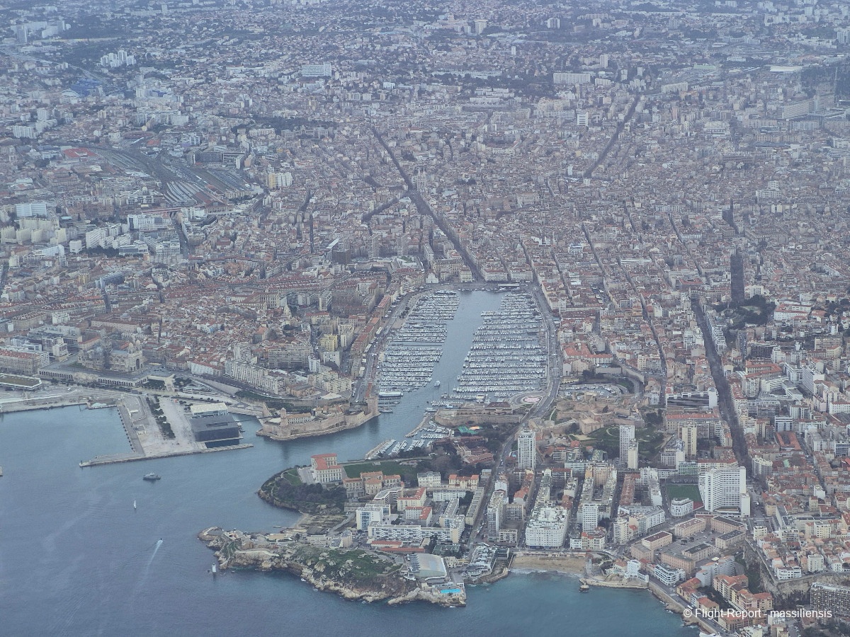 Je m'assoupis avant de me réveiller au large de Nice, que l'on distingue facilement avec ses montagnes en arrière-plan. La descente est bien entamée et nous parvenons au sud du parc national des Calanques. Comme d'habitude, l'approche face au mistral à Marseille est majestueuse, malgré le mauvais temps.