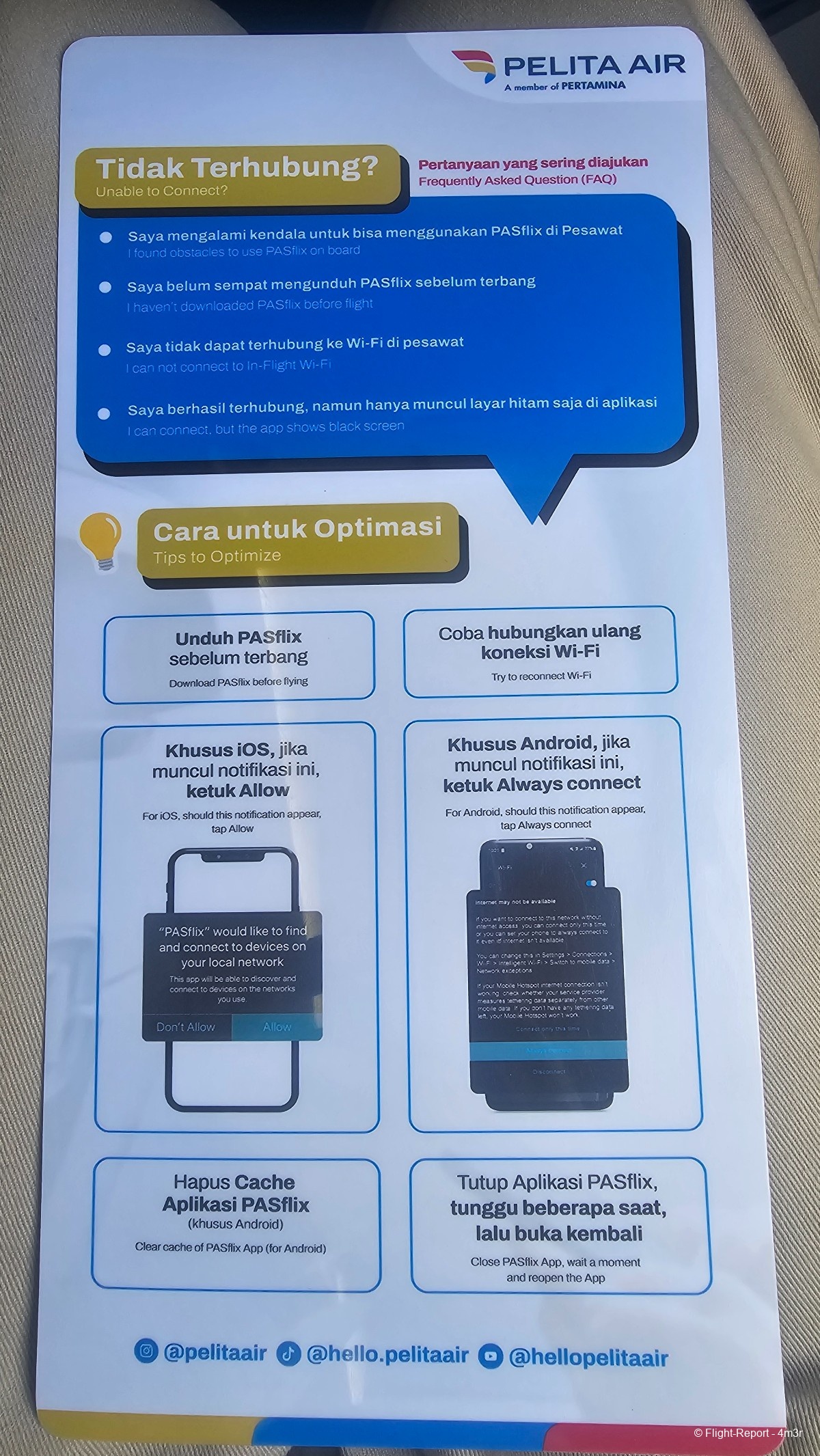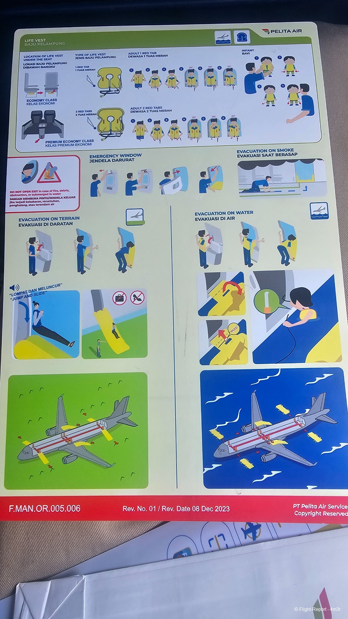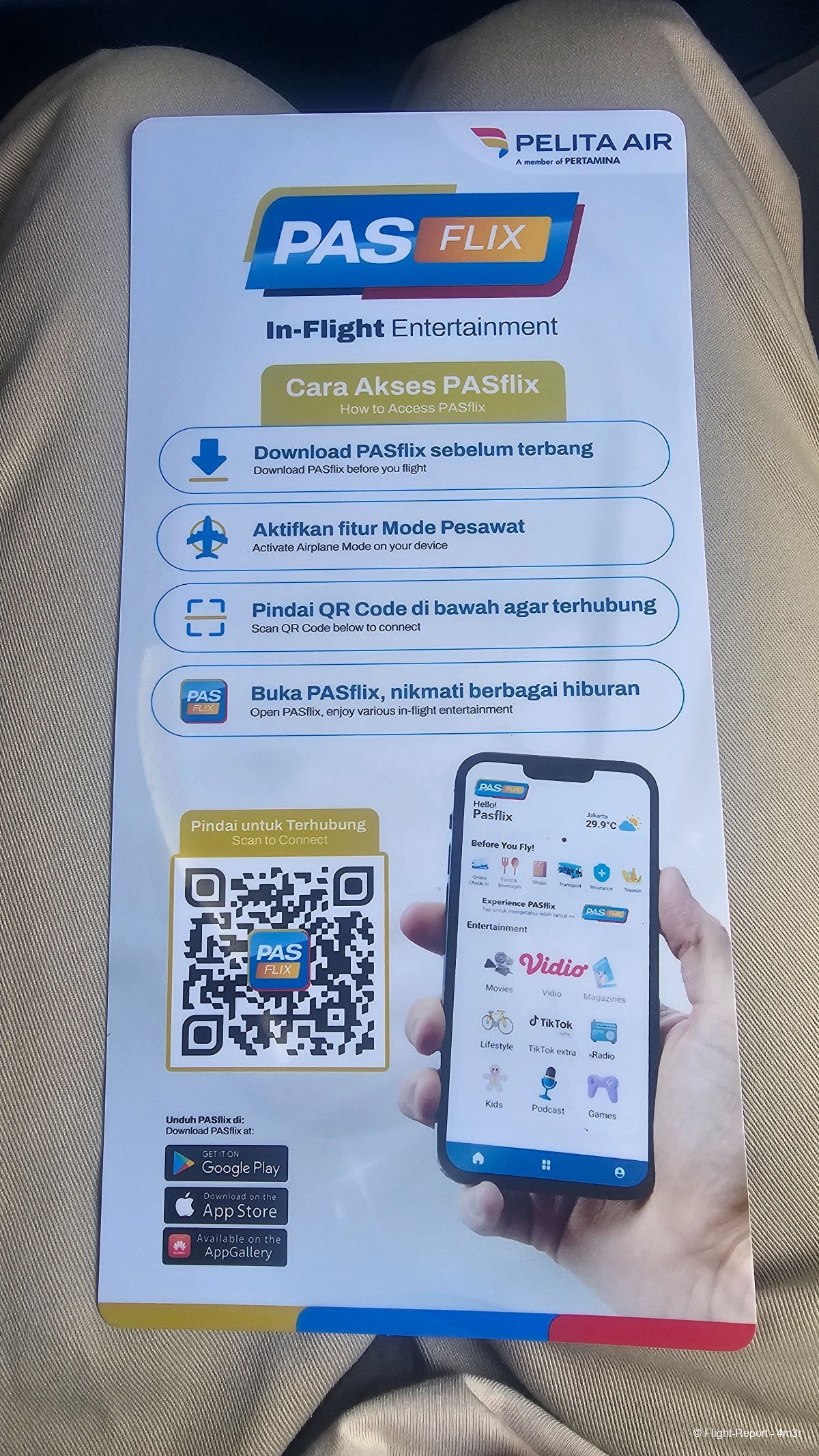 Un peu de lecture (sécurité appareil), de divertissement (quelques lignes plus haut j'avais dit qu'il n'y avait pas d'IFE mais Pelita propose via QR Code l'IFE, je ne l'aurai pas utilisé finalement) & de vomito aux couleurs de IP
