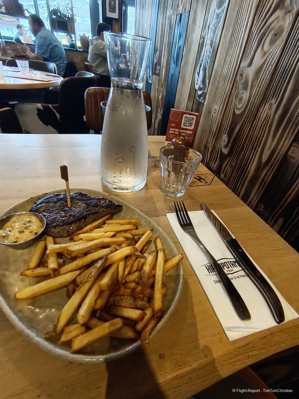 Je m'arrêterai trois stations avant l'aéroport afin de déguster mon dernier steak dans une célèbre grilladerie.