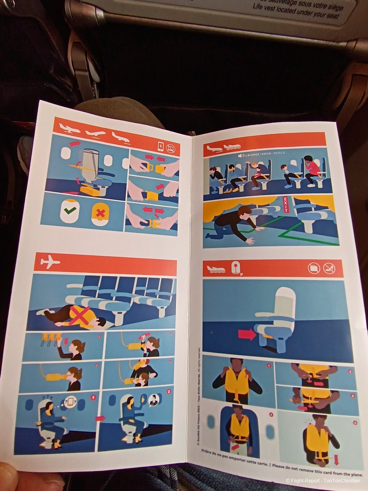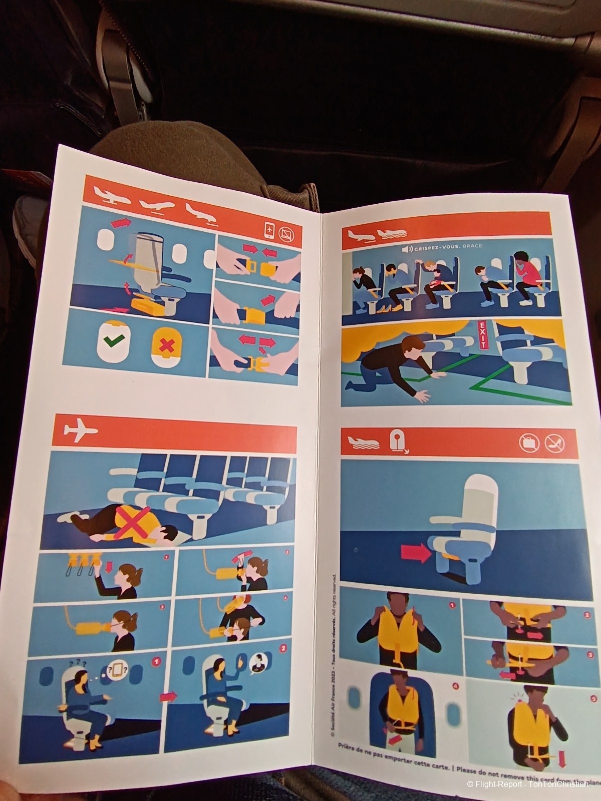 Comme d'habitude, nous serons briefés par l'équipage qui nous demande si on accepte de les aider en restant a ces sièges.