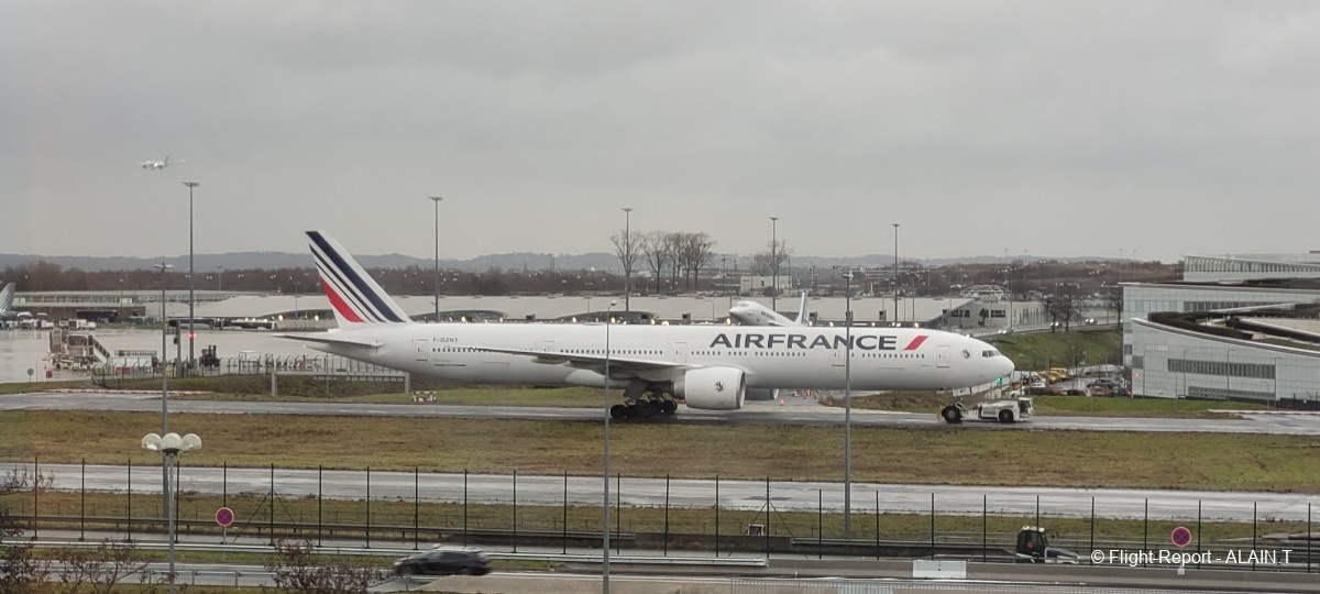 Le départ se fait du Terminal 1 de CDG en zone de construction récente. Passages rapides des contrôles à cette heure matinale.