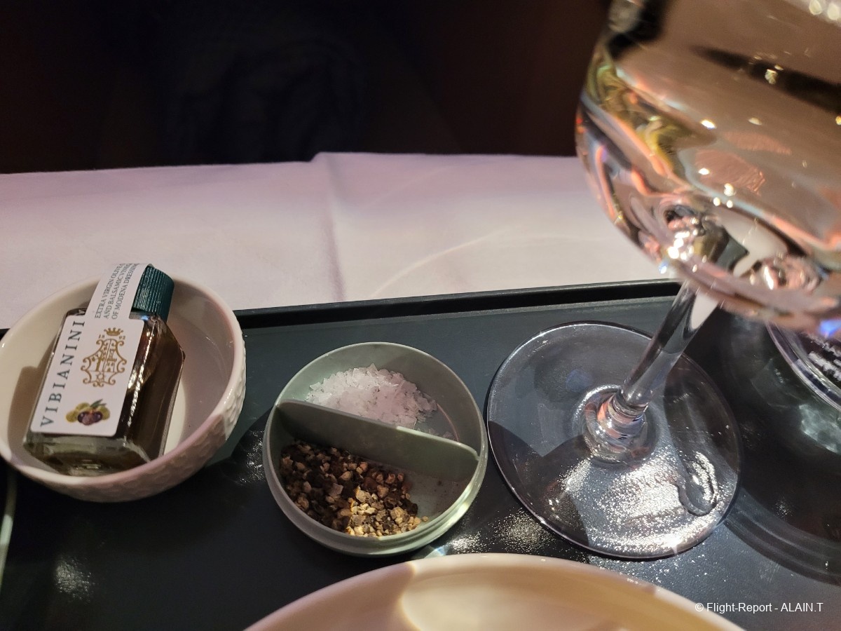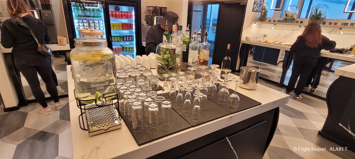 A peine installé, une charmante hôtesse nous propose une boisson d'accueil; ce sera Champagne et la traditionnelle boisson au citron.
