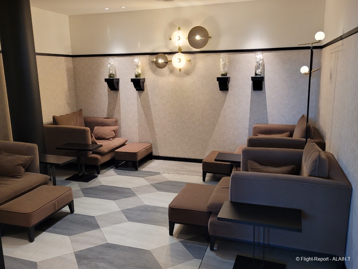 Le salon est confortable et l'offre de boisson set snacking est dans la moyenne.