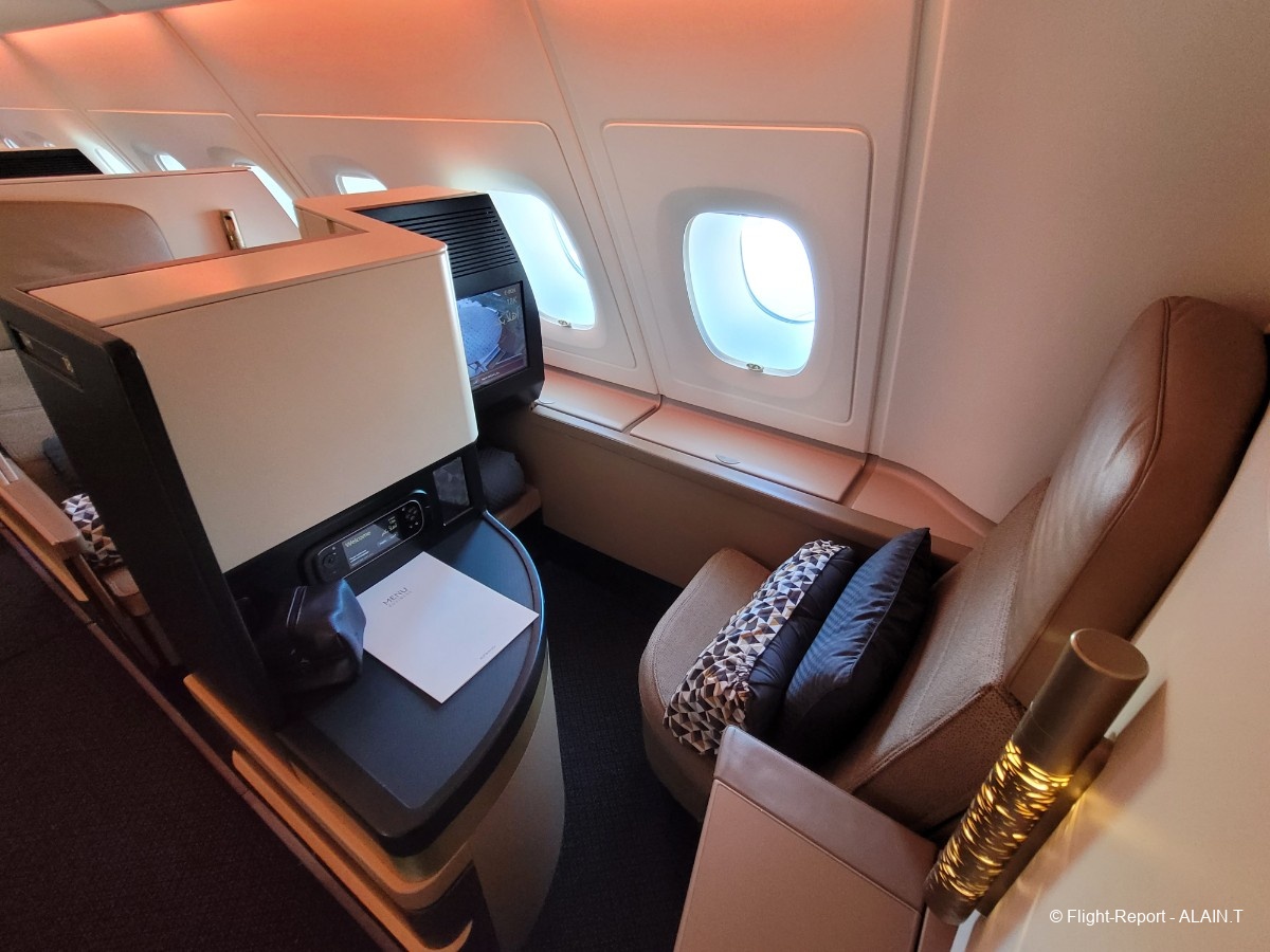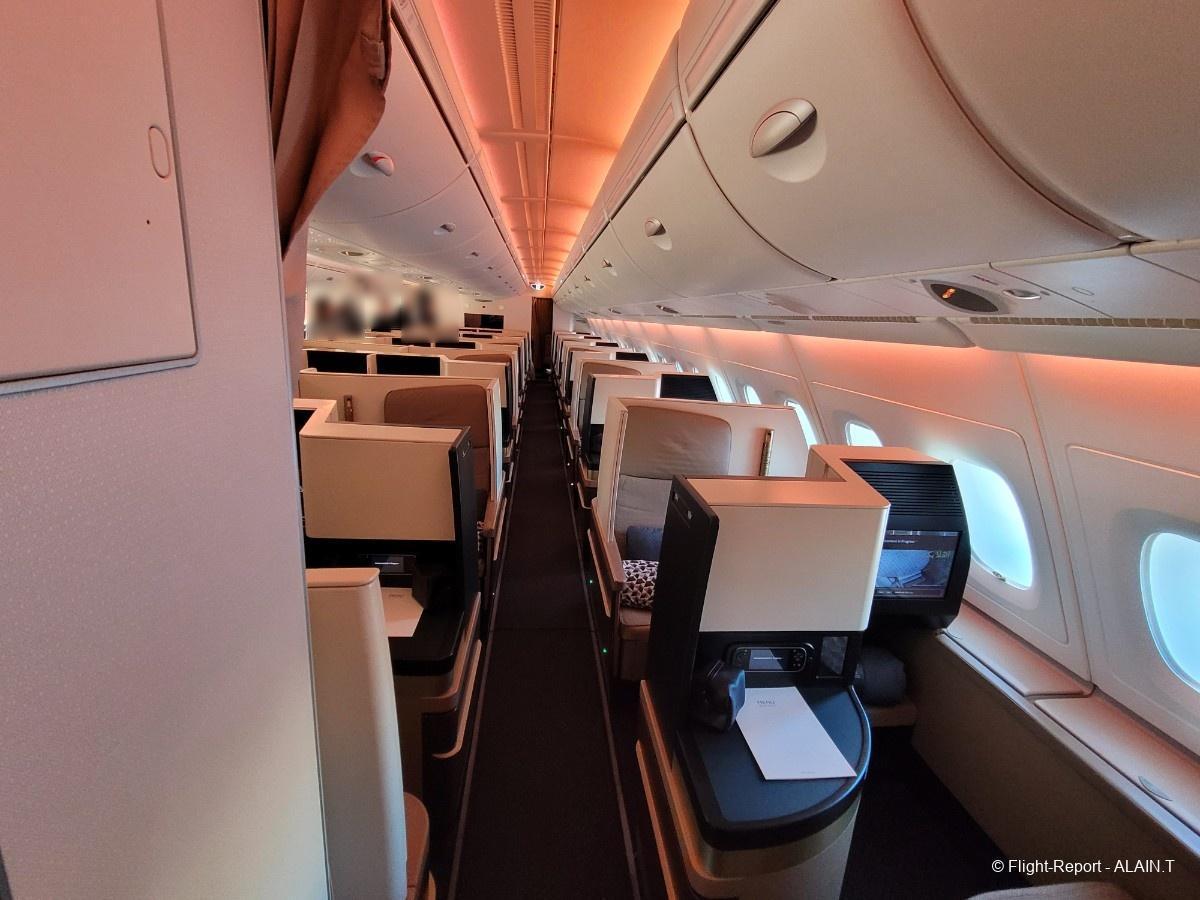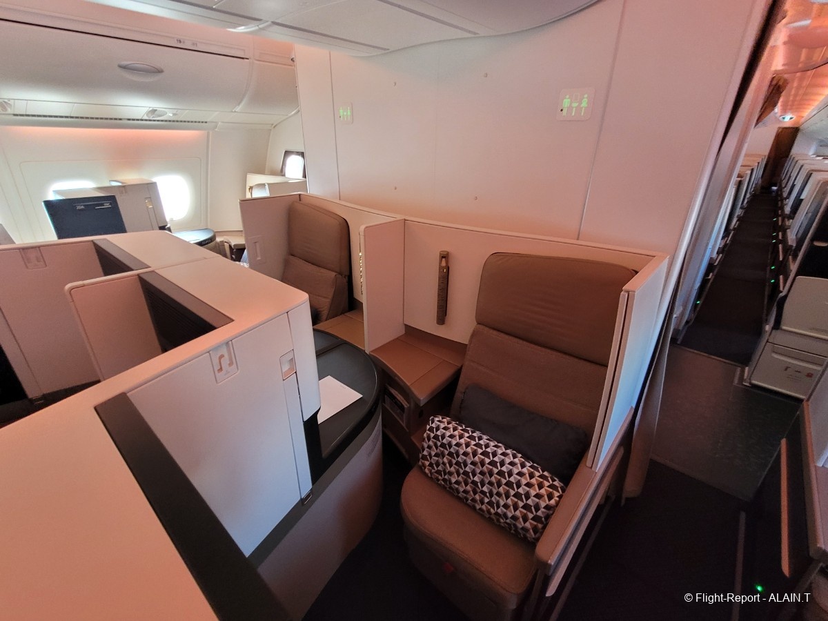 Et c'est la découverte de la cabine Business qui avec la First occupe tout l'étage supérieur de l'A 380.