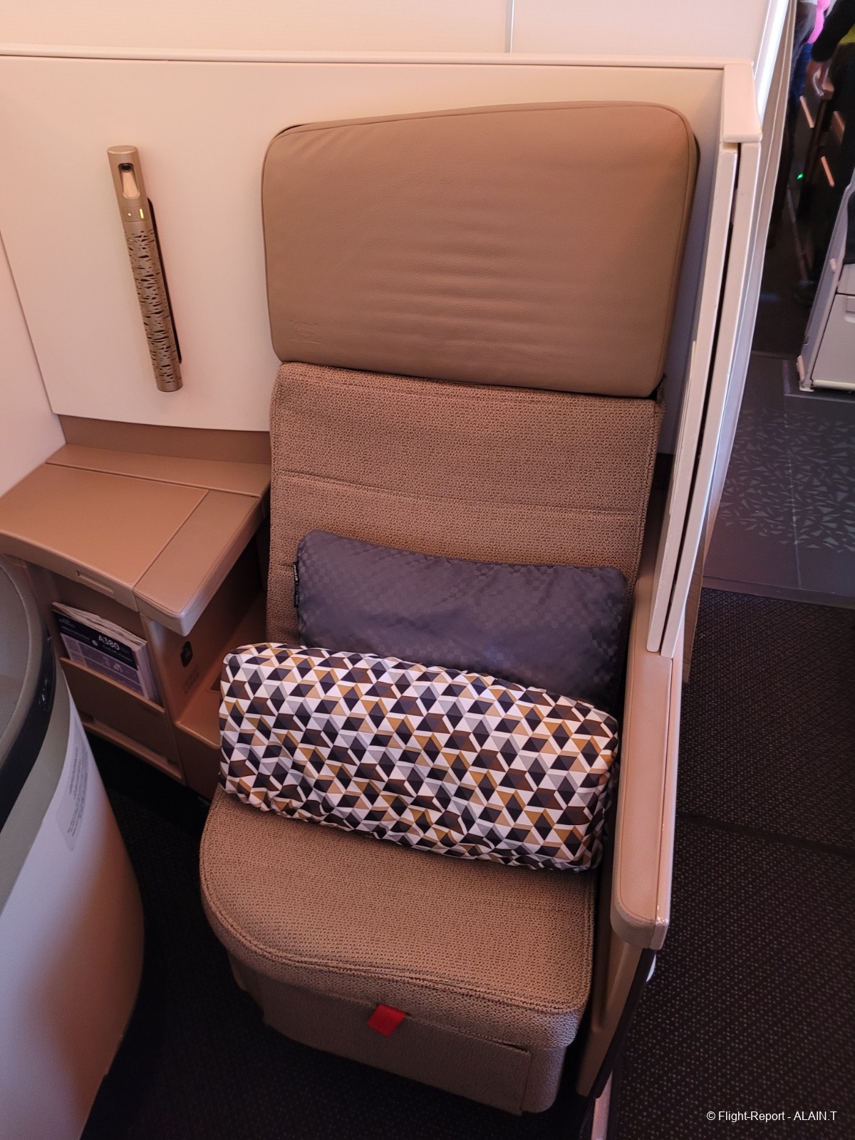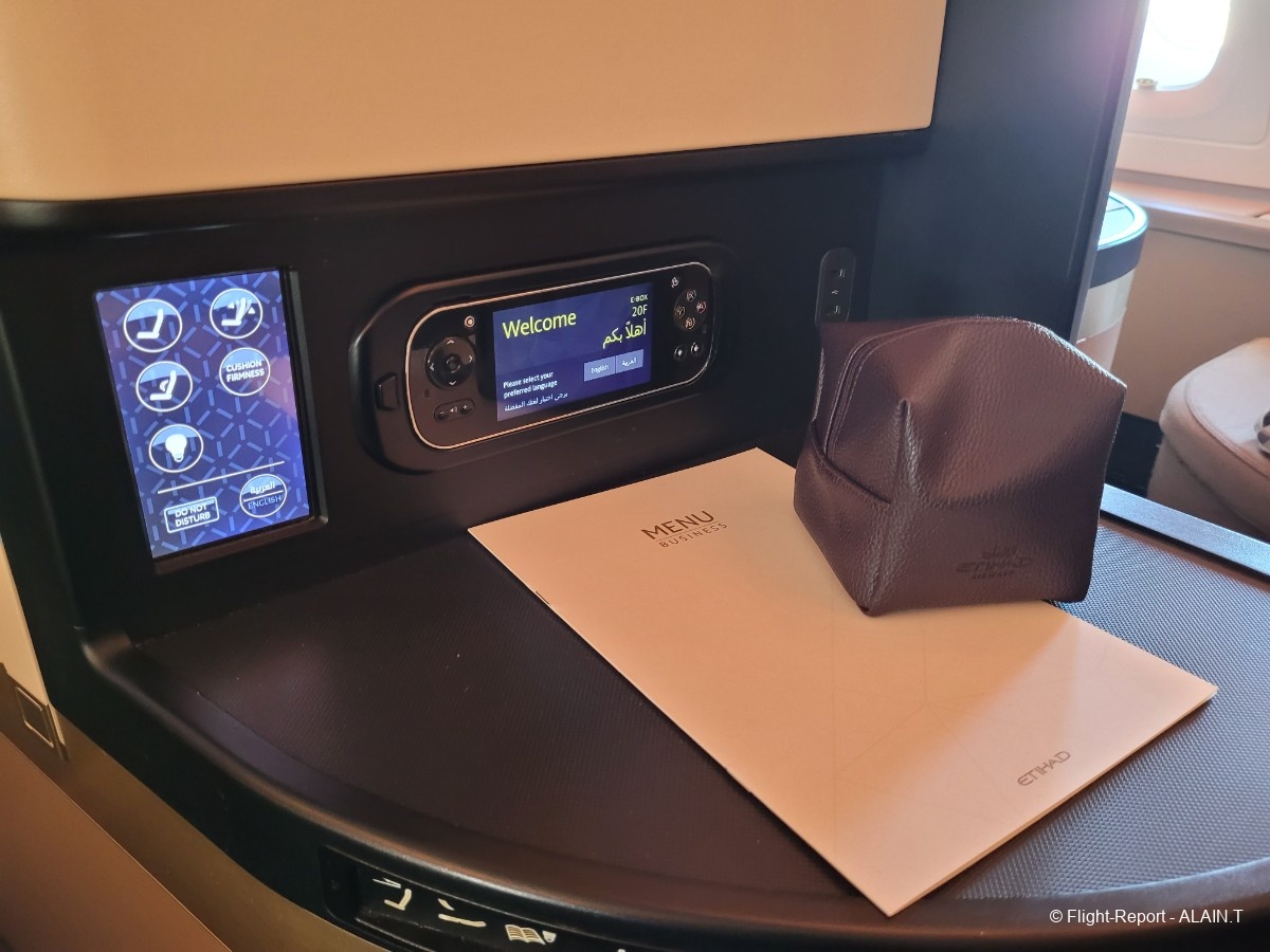 Sans oublier les commandes de siège et éclairages répétées sous la tablette située à l'entrée de la "cabine" business.