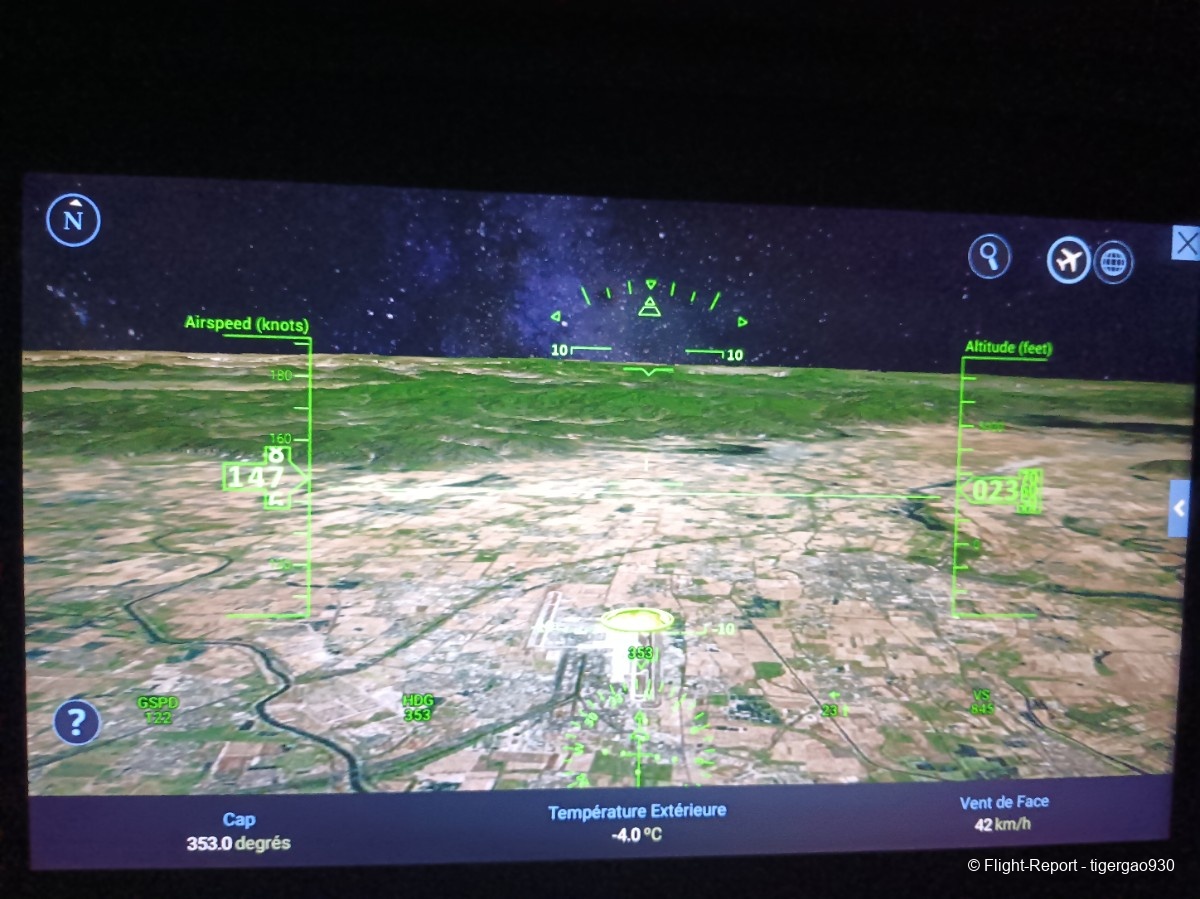 Nous commençons la descente à 20h40 heure Belge et nous nous posons à 4h08 avec un court roulage et arrivé en porte à 4h14.