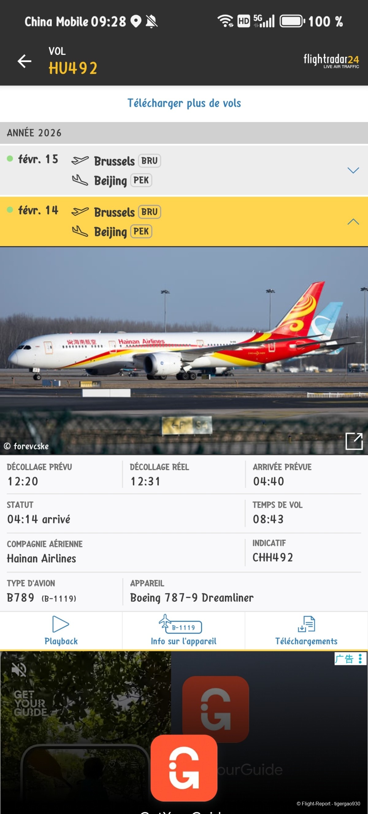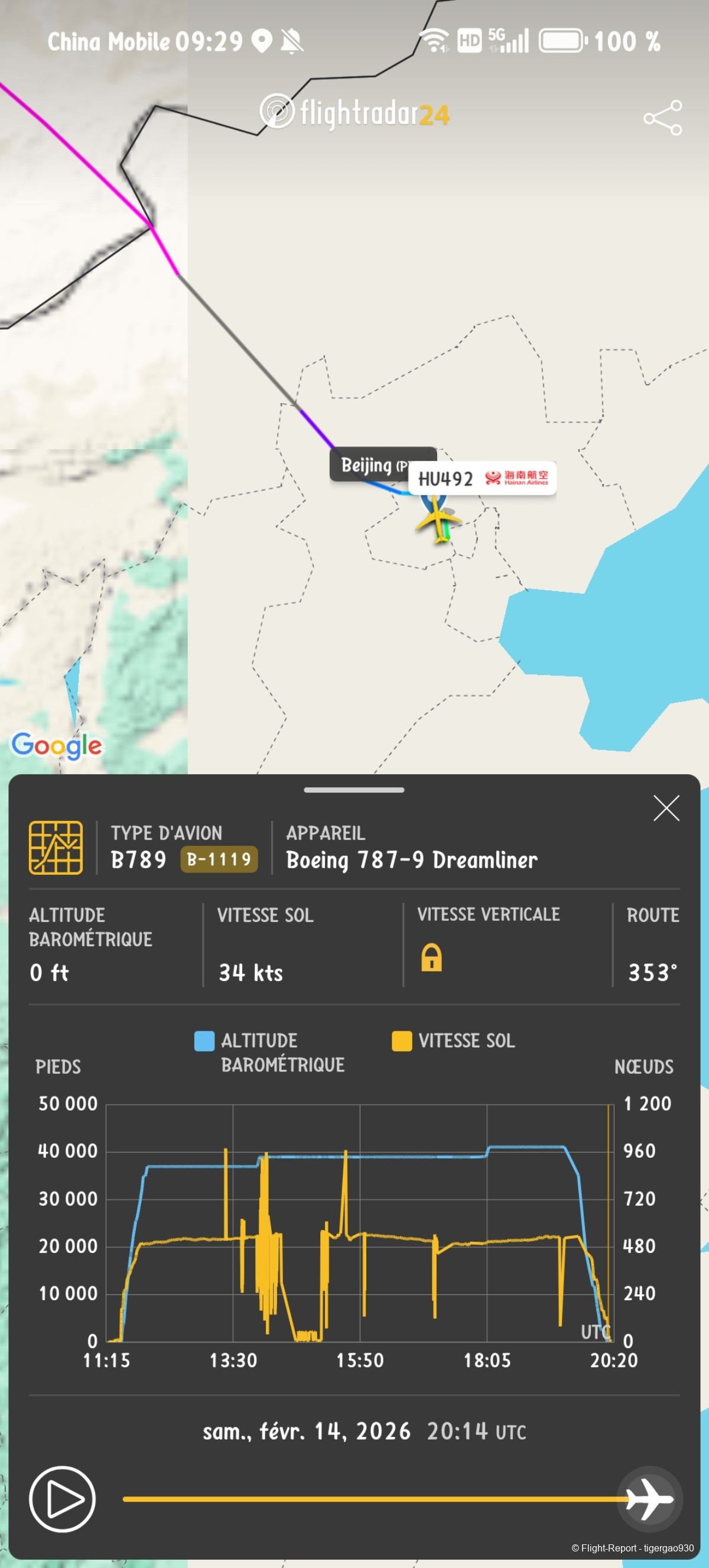 Mais il faut savoir que de base, on devait faire BRU-PVG mais il n'y a pas de vol le 14 donc HU nous a mis sur le vol BRU-PEK.