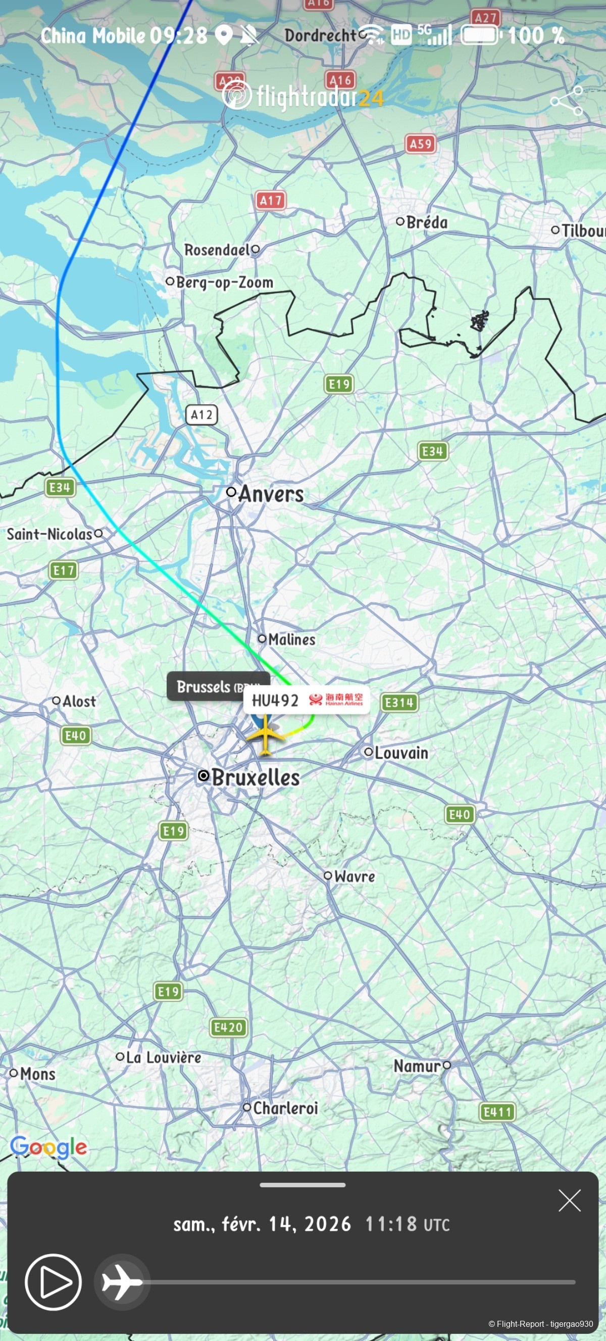 Remarque : on a décollé de BRU avec 10 minutes de retard et HU a rattrapé quasi 30 min.