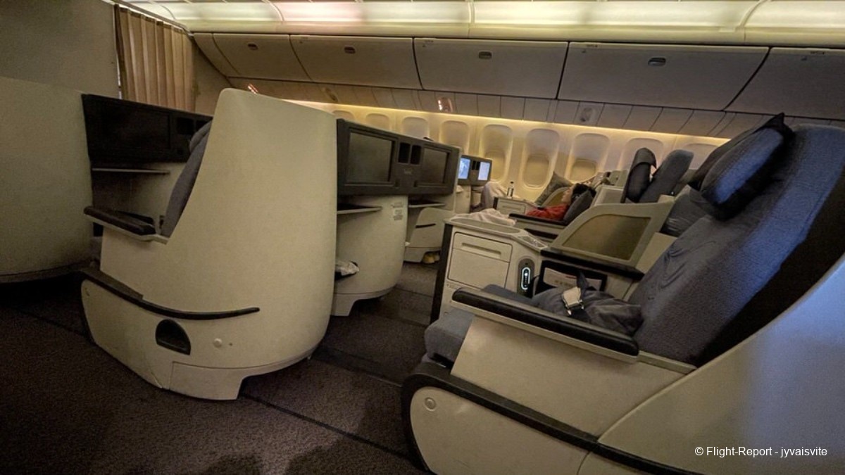 <font dir="auto" style="vertical-align: inherit;"><font dir="auto" style="vertical-align: inherit;"><font dir="auto" style="vertical-align: inherit;"><font dir="auto" style="vertical-align: inherit;"><font dir="auto" style="vertical-align: inherit;"><font dir="auto" style="vertical-align: inherit;">Nous entrons dans la cabine. Les sièges sont confortables, Le pitch très grand, suffisamment de place pour les pour les jambes. Des petits chaussons nous attendent ainsi que la trousse de confort "L'Occitane" bien complète et esthétique. Sur chaque siège il y a un oreiller et une vraie couette dans sa housse, ce qui est assez exceptionnel en général, il y a une couverture. La cabane business est en 2-2-2 vu l'important pitch des sièges alors que la cabine des écos est en 3-4-3 donc je vous laisse imaginer la largeur de ces sièges. Dans cette configuration, il y a aussi une petite cabine première dans laquelle il y a 8 sièges. [/fonte][/fonte] [/font][/font][/font][/font][/font][/font][/font][/font][/font][/font][/font][/font][/font][/font][/font][/font][/font][/font][/font][/font][/font][/font]