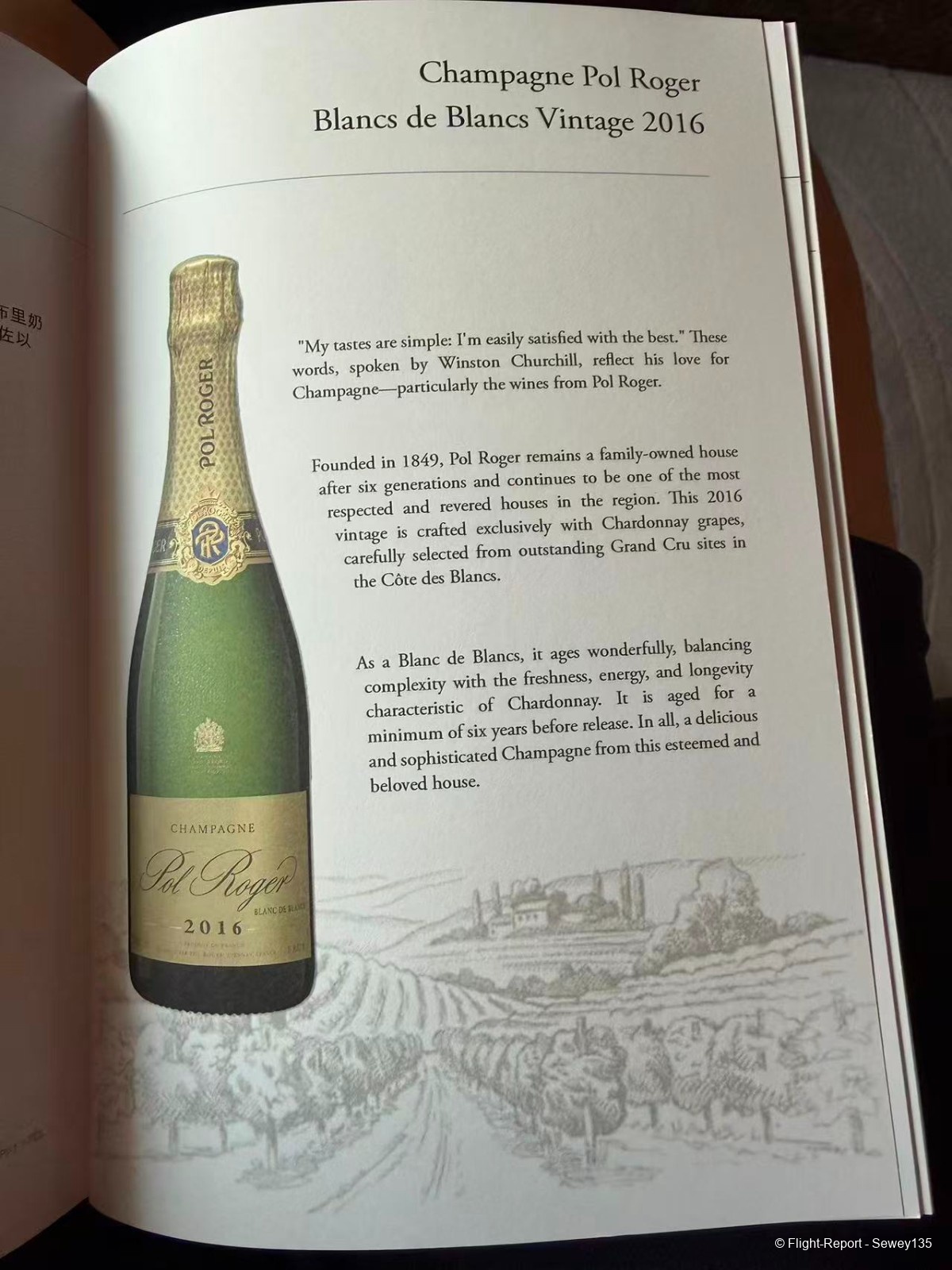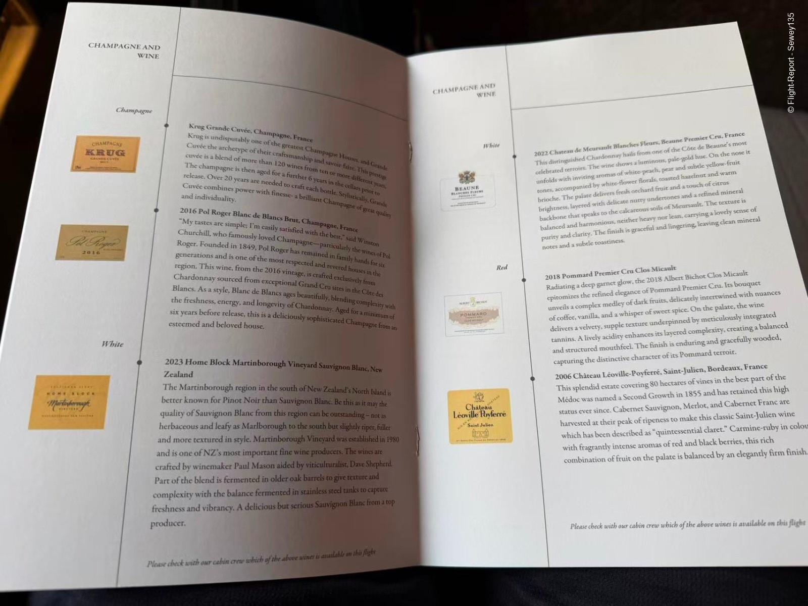 I went immediately to the dining area, which had only one other passenger. Here’s the menu, what stands out is the incredible champagne offering, and I had to go for the 2007 Tattinger. Here it is!