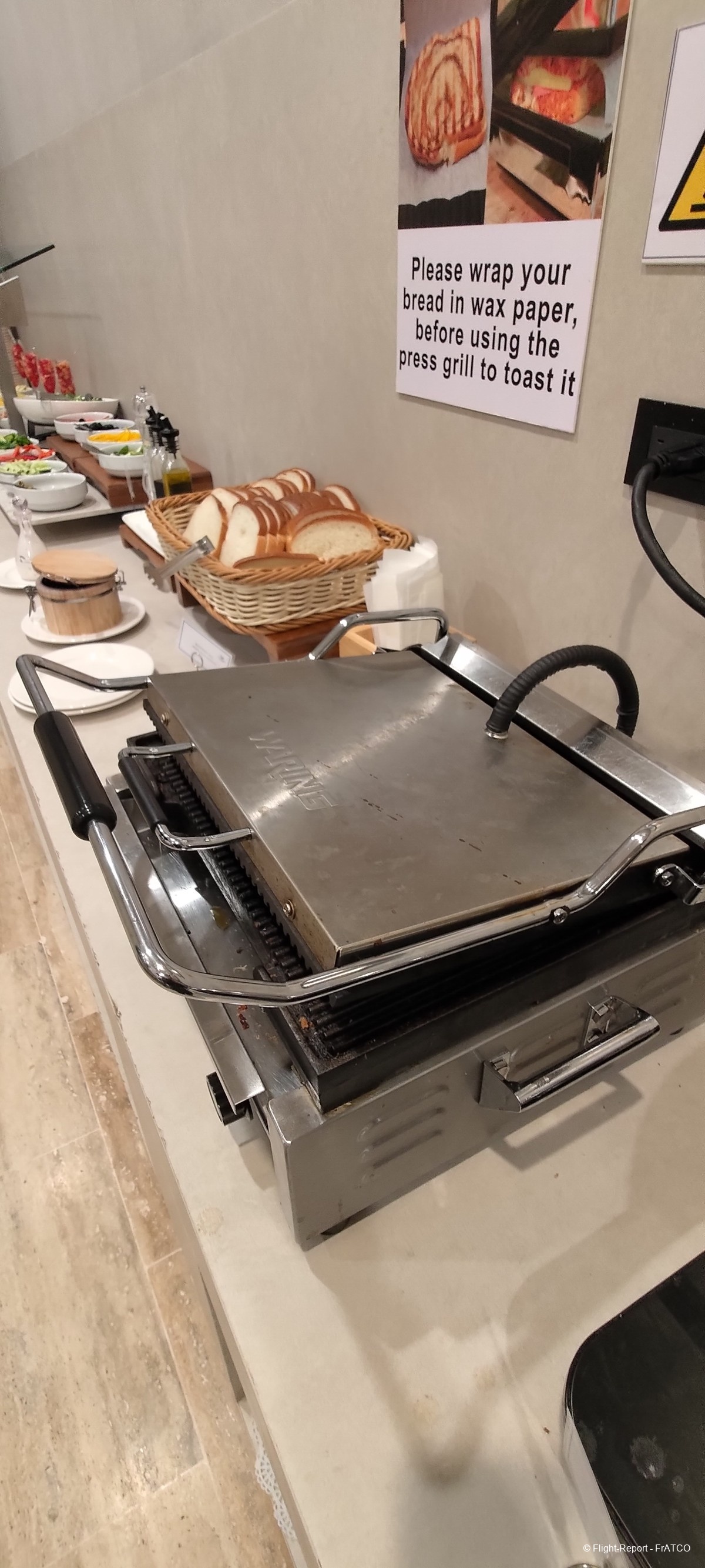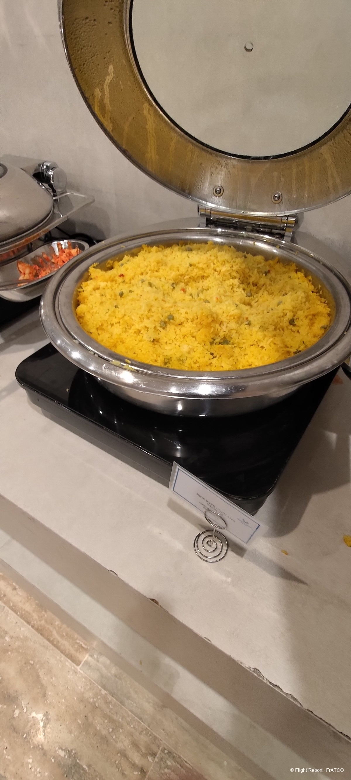 Nous arrivons au salon. À mon passage il y a quatre ans avant de prendre un vol AF, ce salon avait brillé par la pauvreté de son offre en nourriture. J'ai lu qu'il s'est amélioré, réponse sous peu. L'enregistrement y est laborieux.
