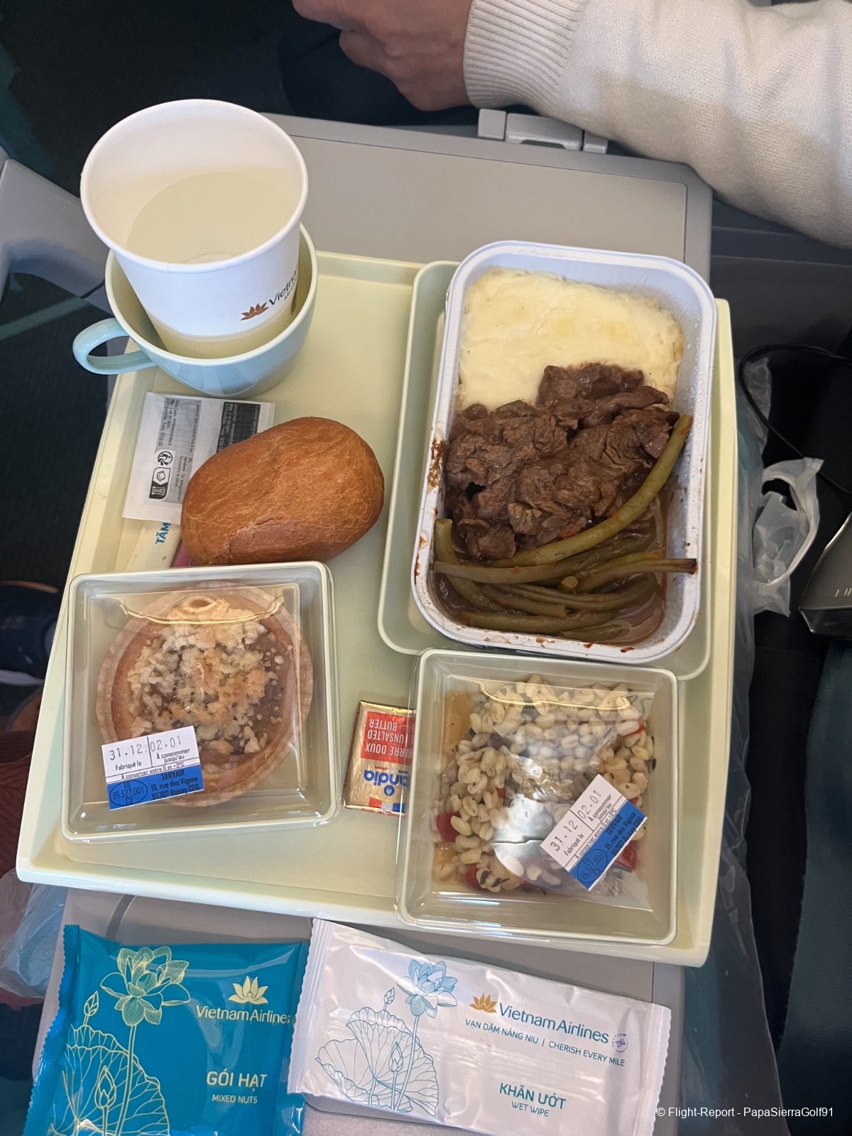 Un vol bien agréable aux standards asiatiques, le sac bon appétit n'a qu'à bien se tenir... La présentation des plats en photo est claire et pratique, seuls les couverts en bois font tache.