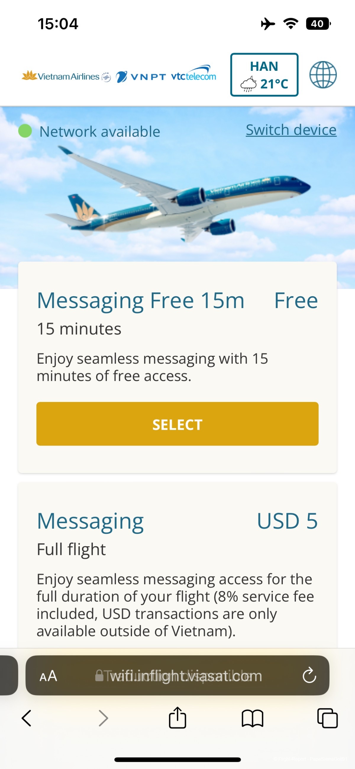 Atterrissage avec 25 min d'avance à Ha Noi :