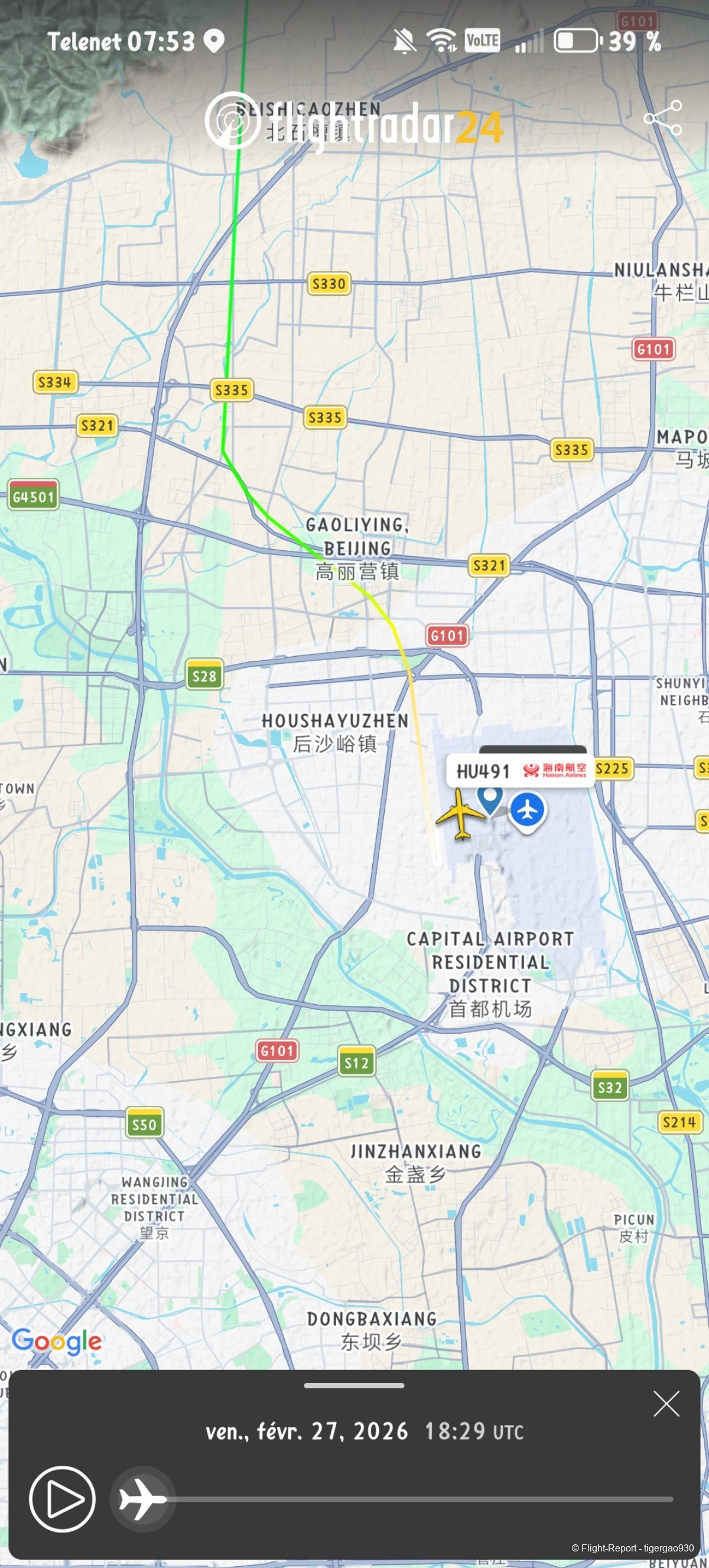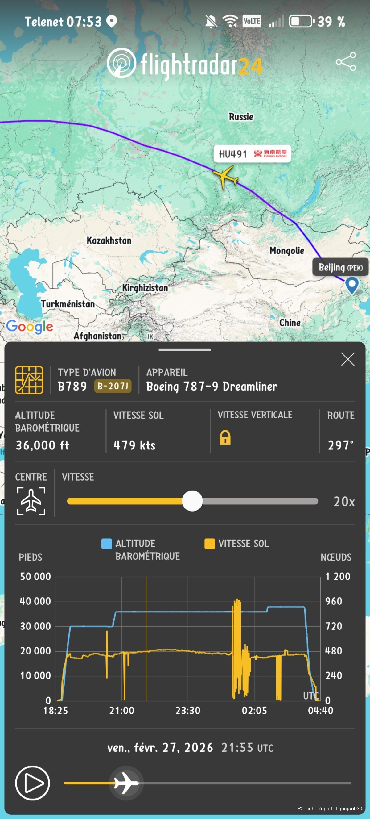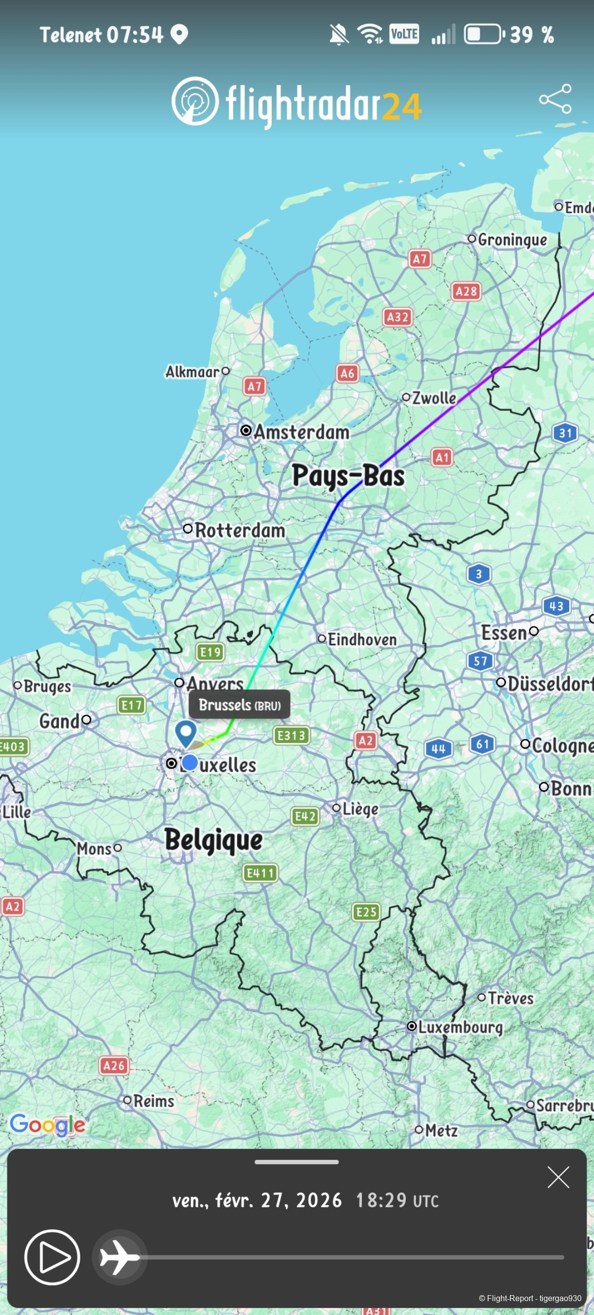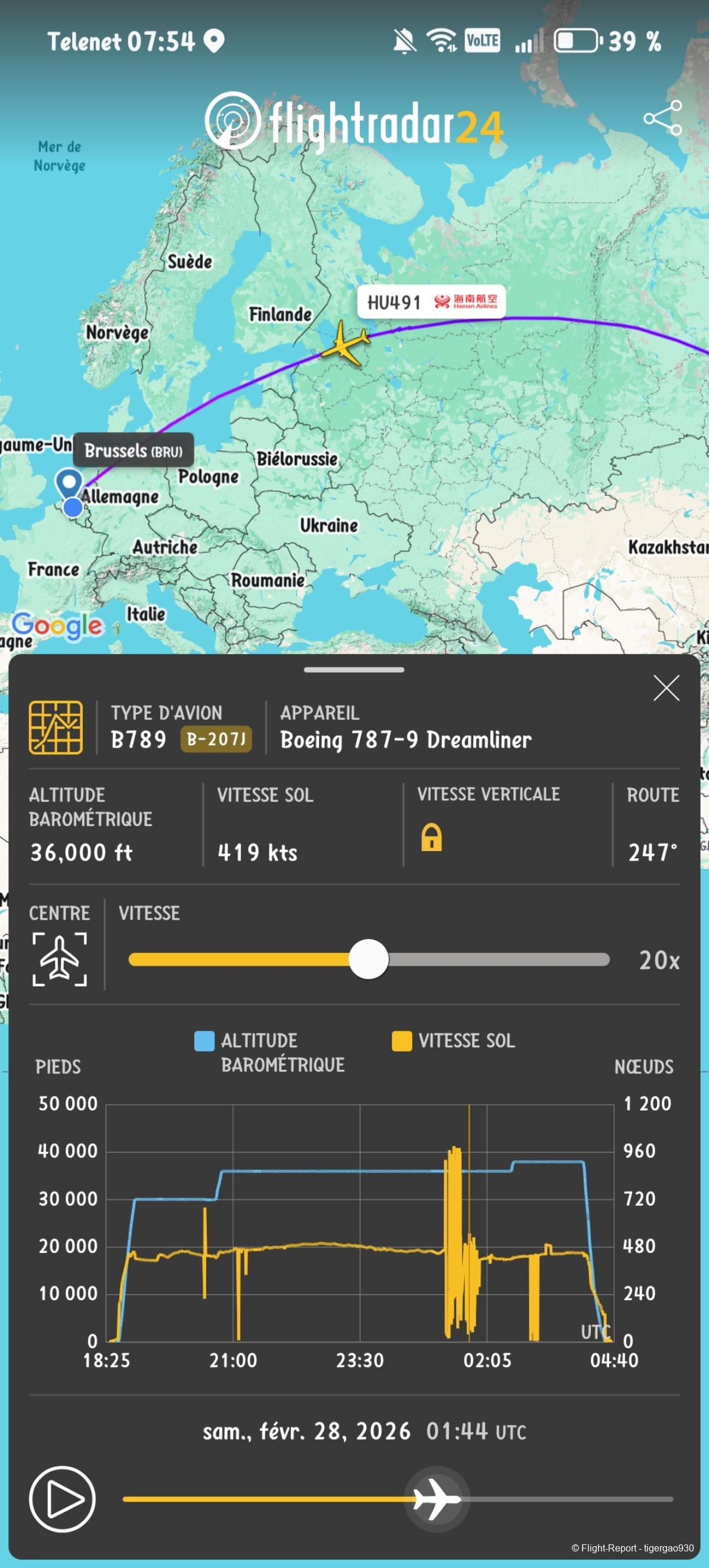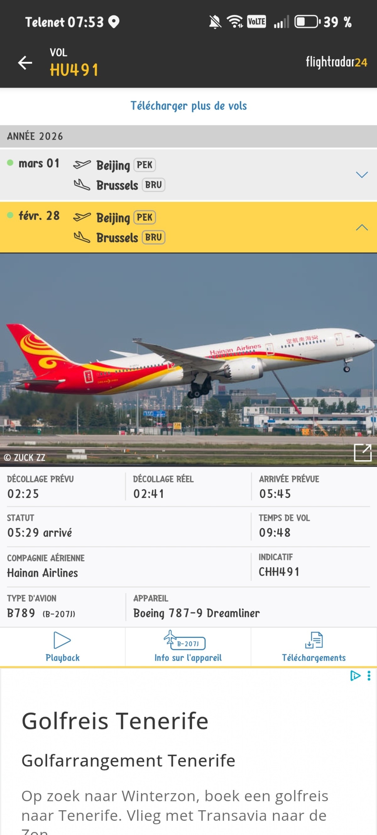 Voici le vol d'après Flight radar 24