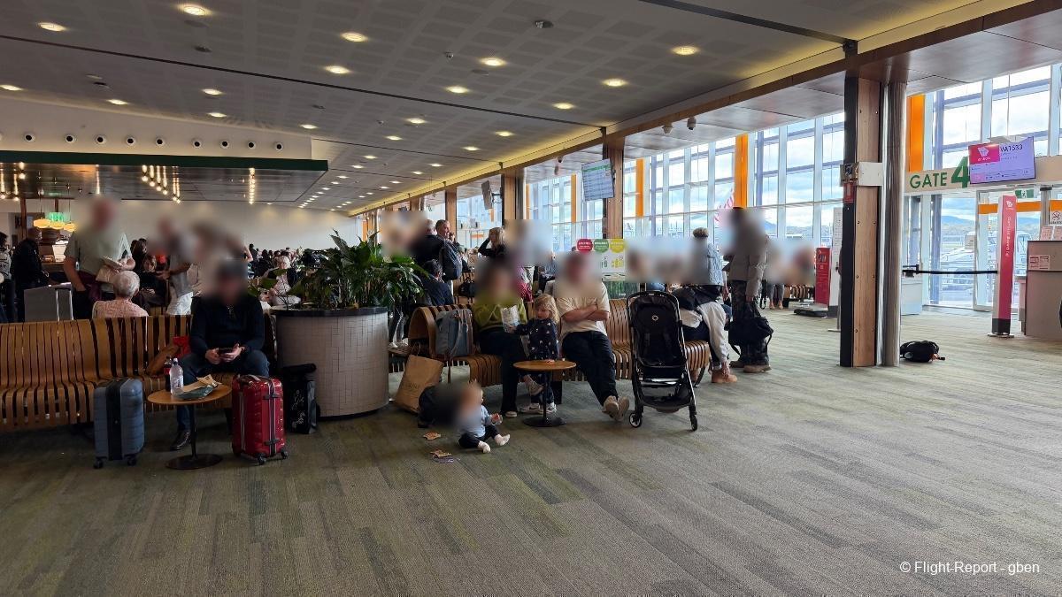 Une grande salle face aux pistes permet de patienter avant son vol.