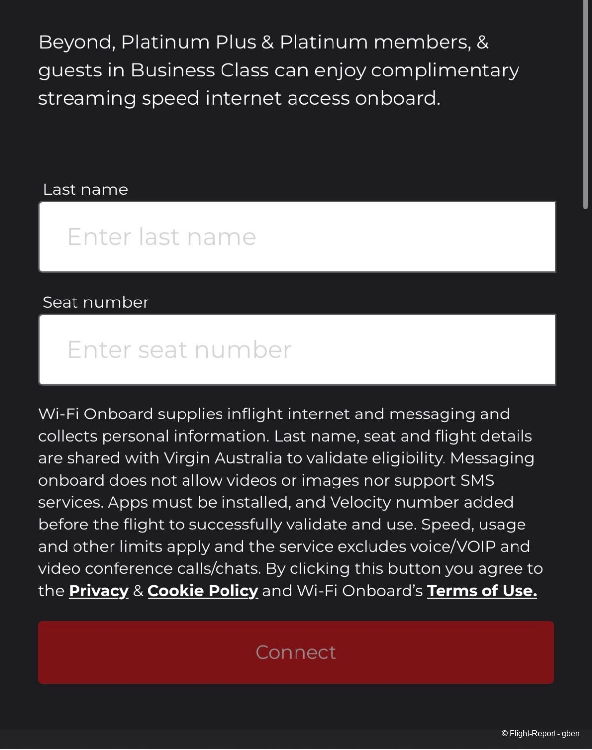 Rapidement, je me connecte au wifi gratuit pour les passagers business, il suffit de noter son numéro de siège et son nom.