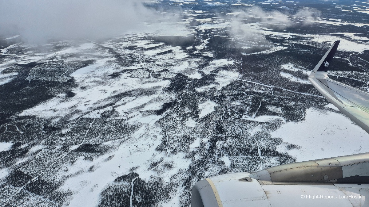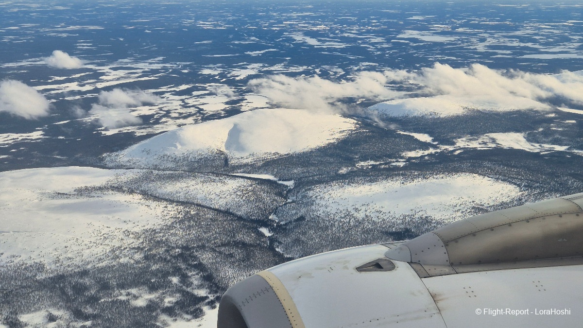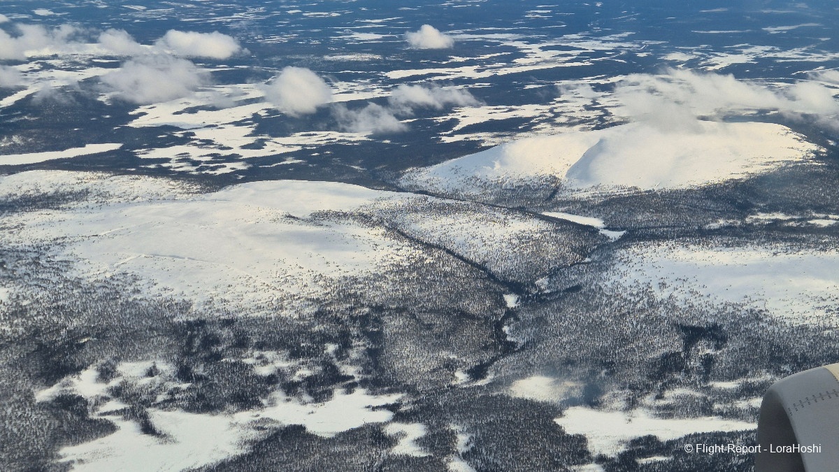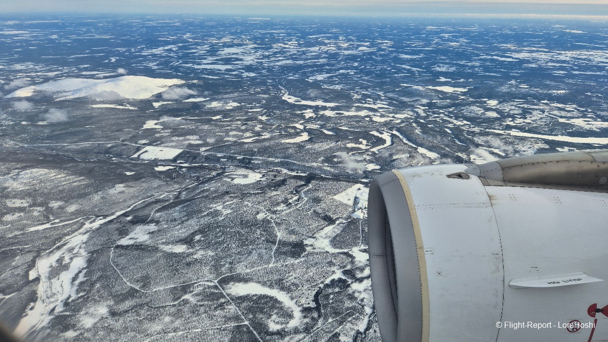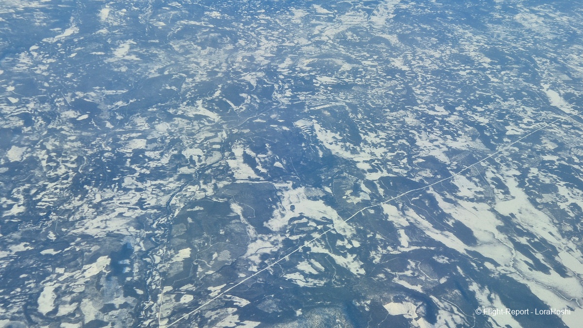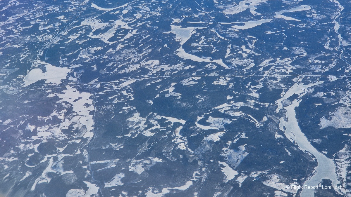Sur les coups de 12H20 les vues commencent à apparaître. Des étendues blanches, des lacs gelés, pas de doute, nous survolons bien la Finlande.