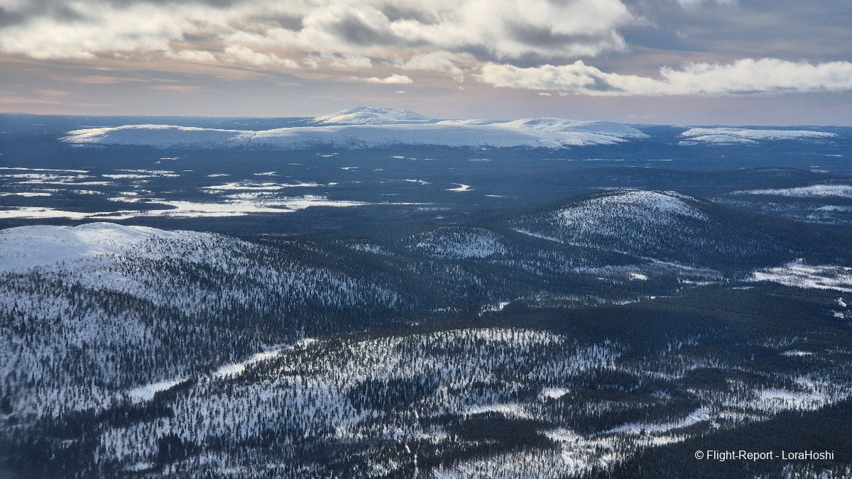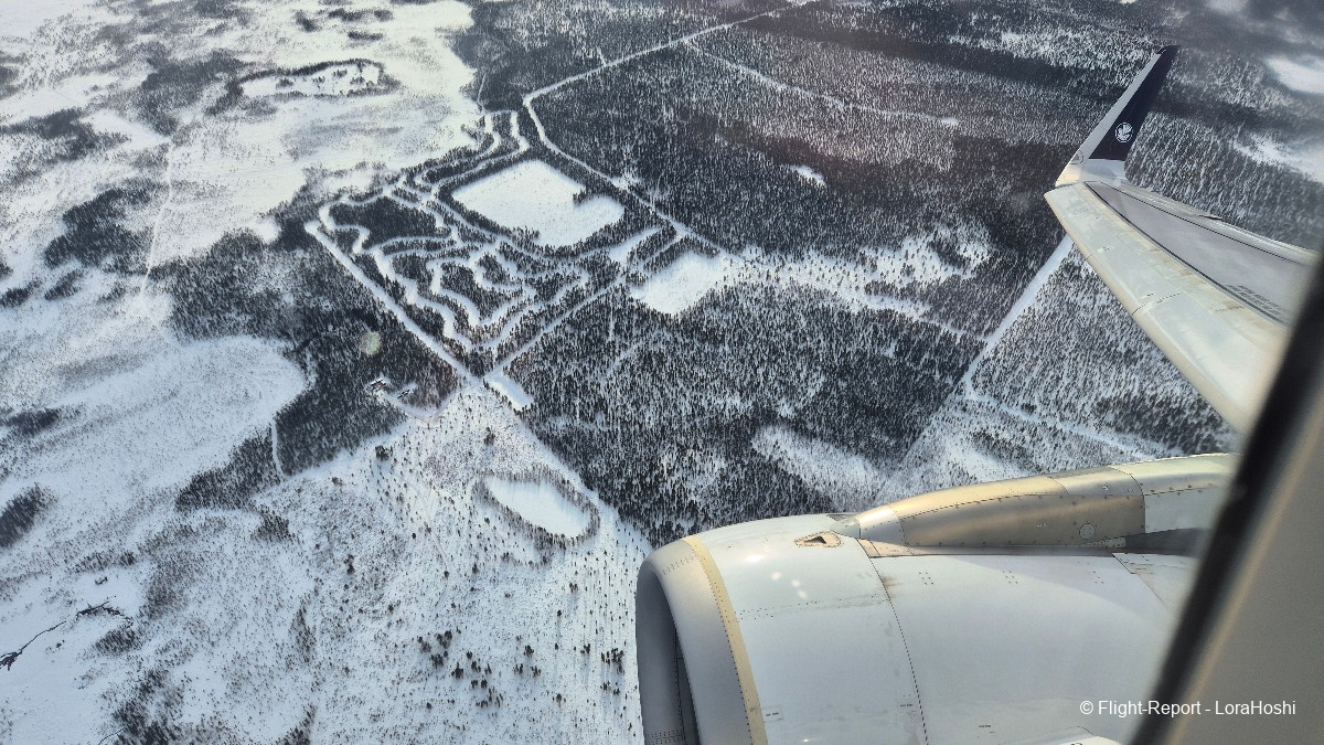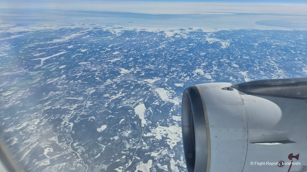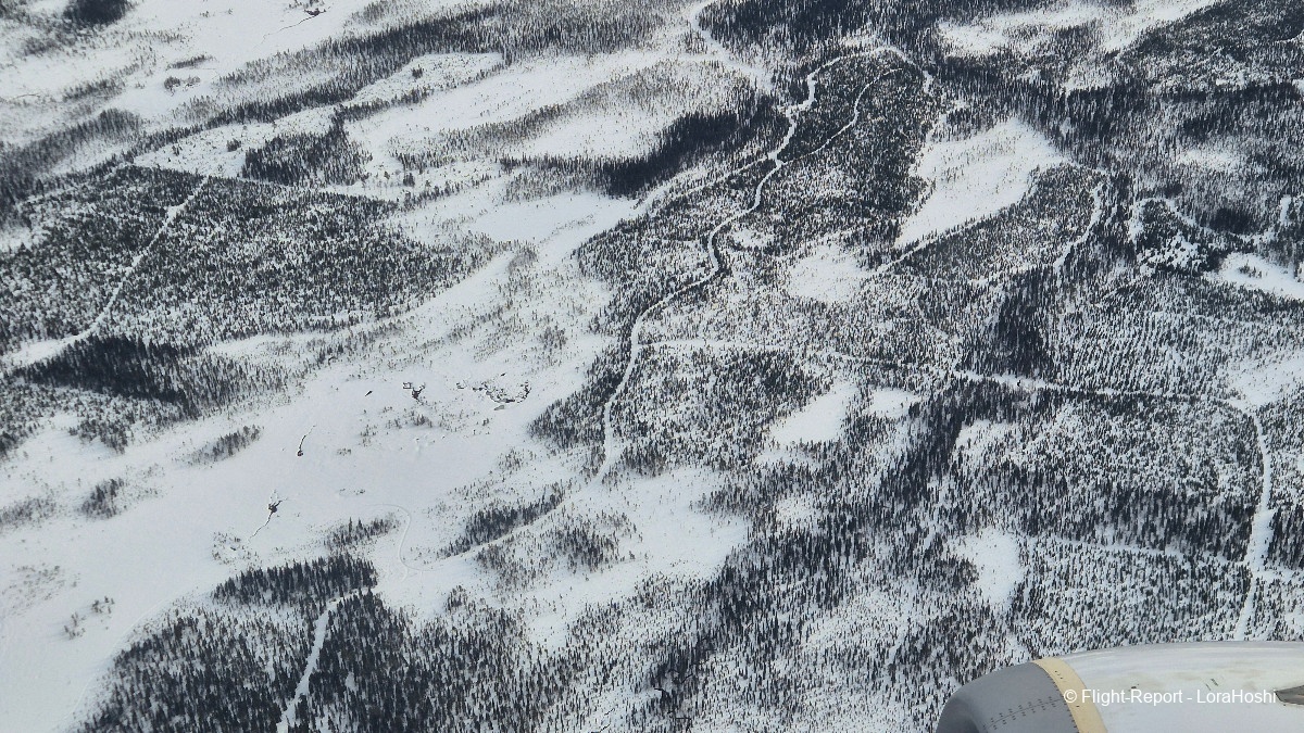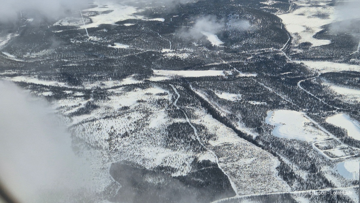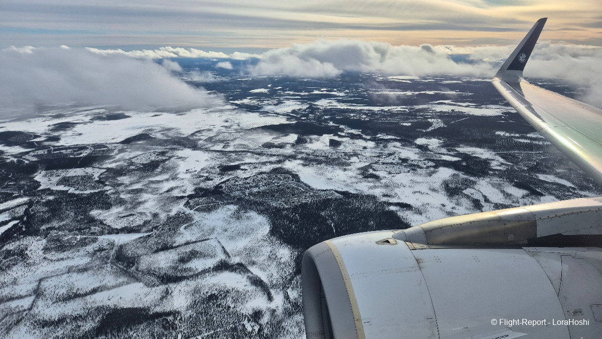 Sur les coups de 12H20 les vues commencent à apparaître. Des étendues blanches, des lacs gelés, pas de doute, nous survolons bien la Finlande.