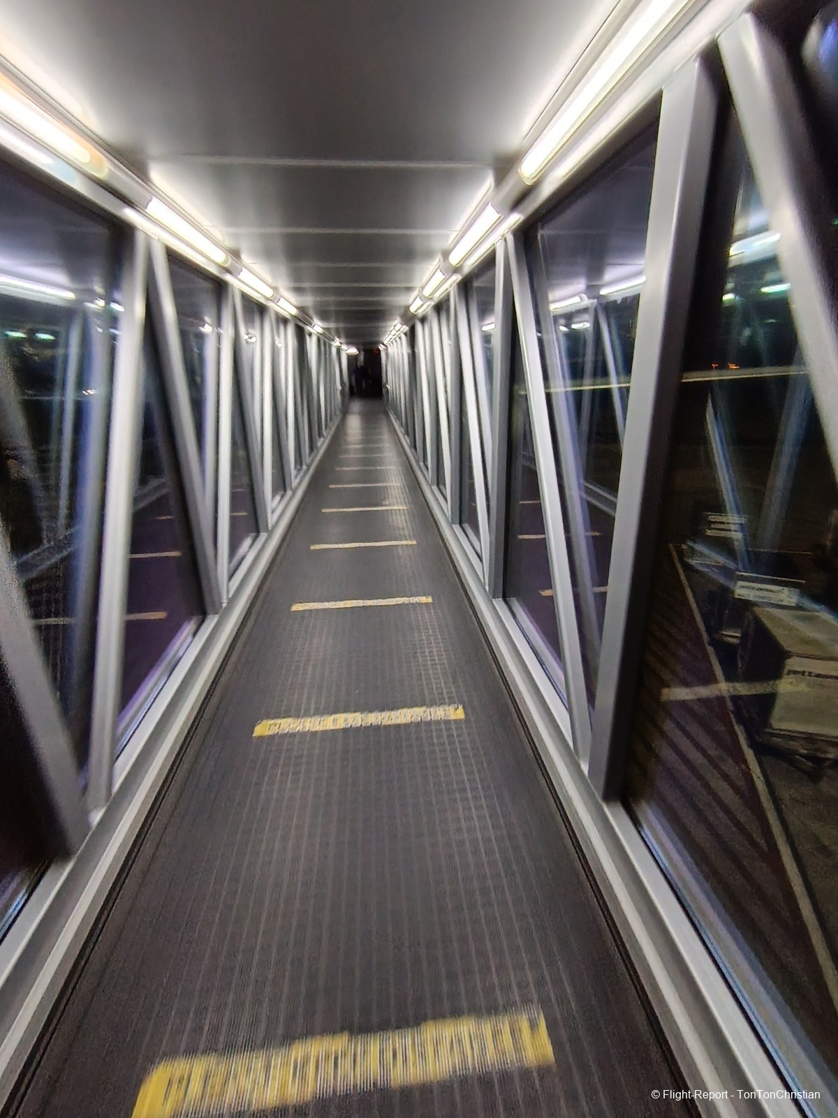 Nous empruntons la passerelle vitrée et suivrons le fléchage bagage.