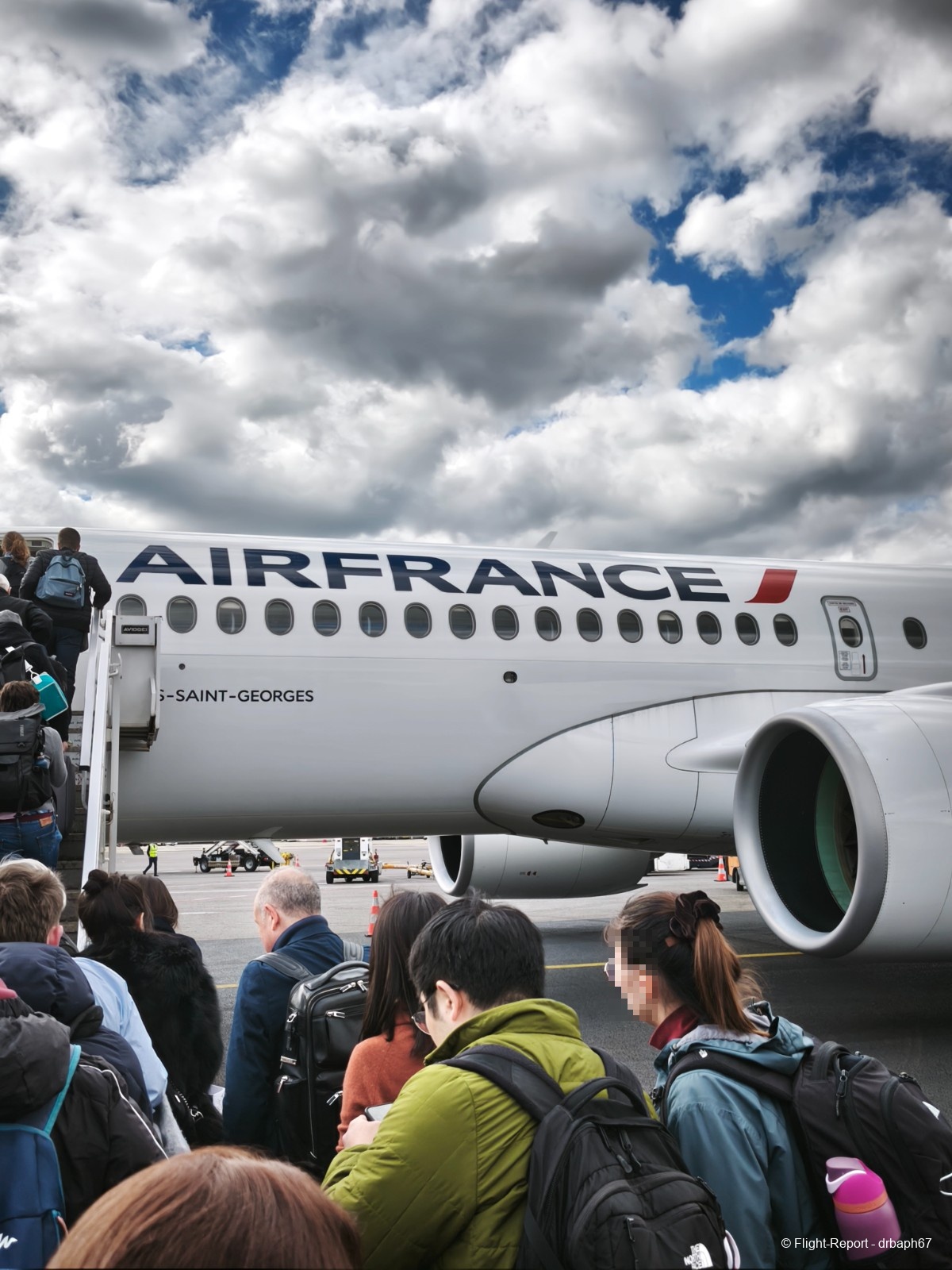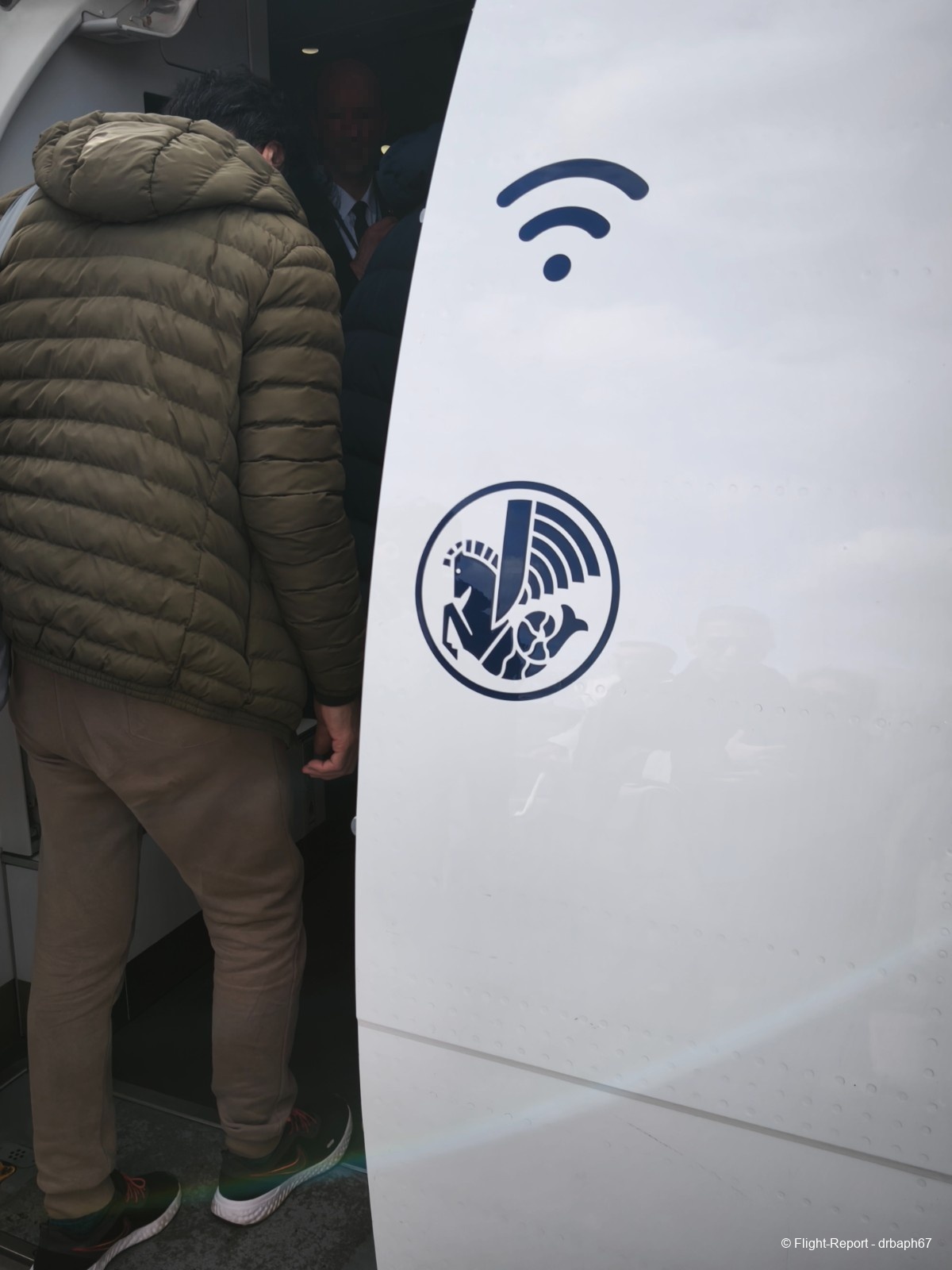 Les étapes s'enchaînent avec la même longueur. Ce sera lent. Nous parviendrons à l'avion. On embarque et fait connaissance avec nos sièges.