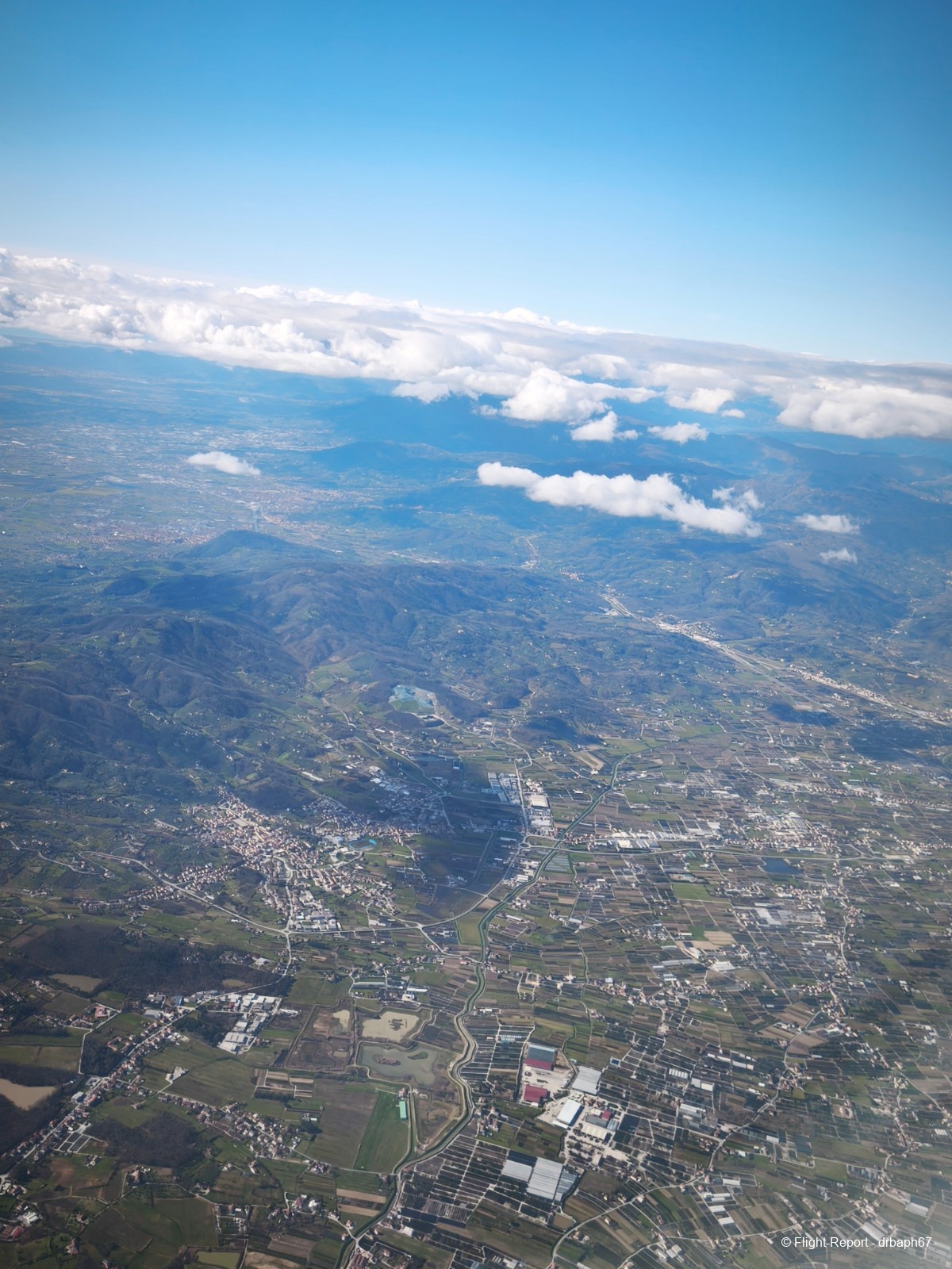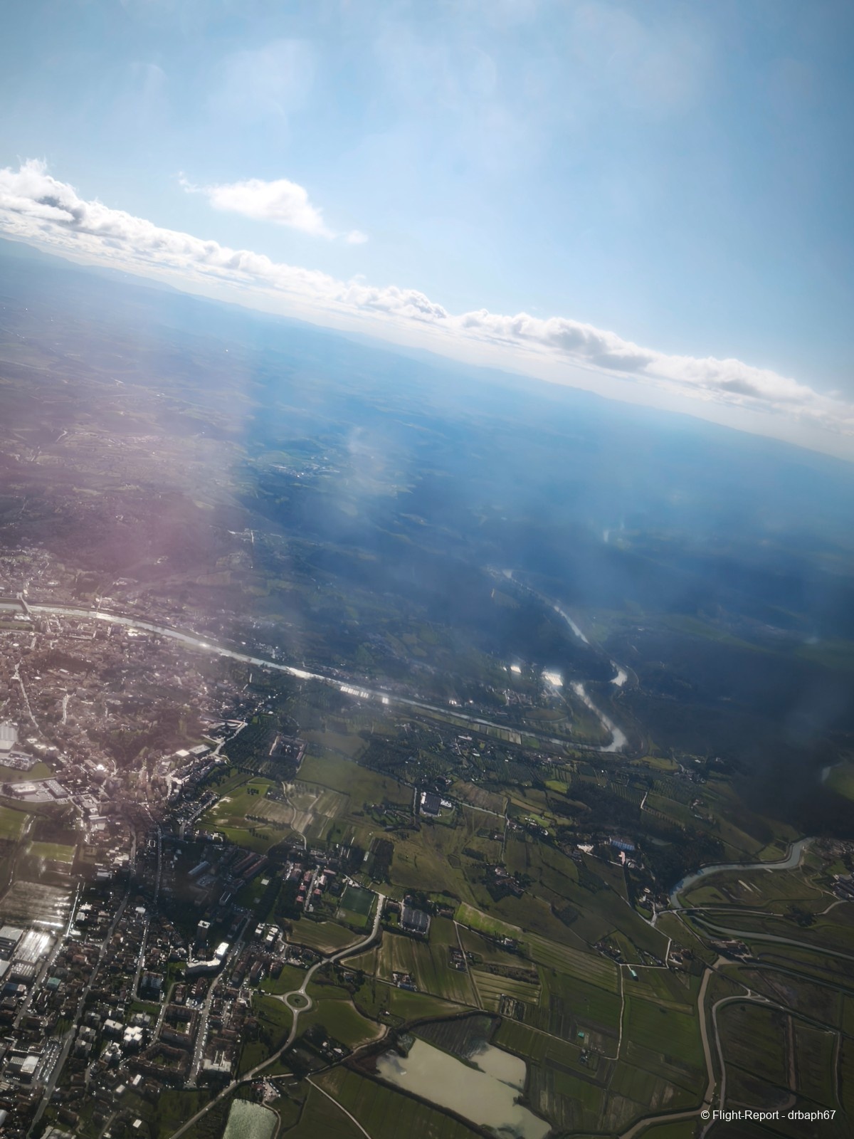 Le vol est très agréable dans un ciel bleu et l'approche sur BLQ me donne envie de visiter cette ville. Nous y aurons là une escale de 35 minutes pour les pleins carburant et le vrai tronçon du vol. On nous annonce également que la neige fond à Paris. Cette fois cap sur CDG.