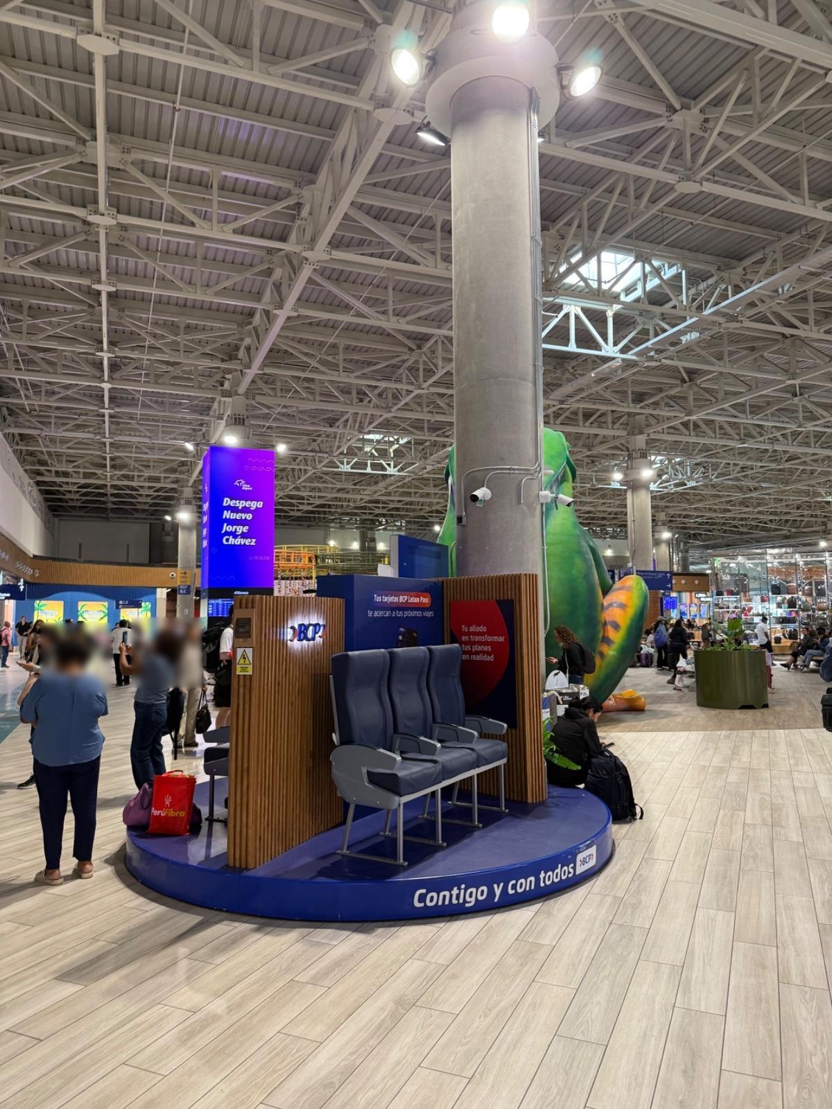 Notre chauffeur nous dépose au niveau des arrivées, à la porte 3 et nous entamons la remontée vers le hall des départs. Les comptoirs d’enregistrement de LATAM sont en zone B, mais aucune zone n’est délimitée pour un accès rapide.