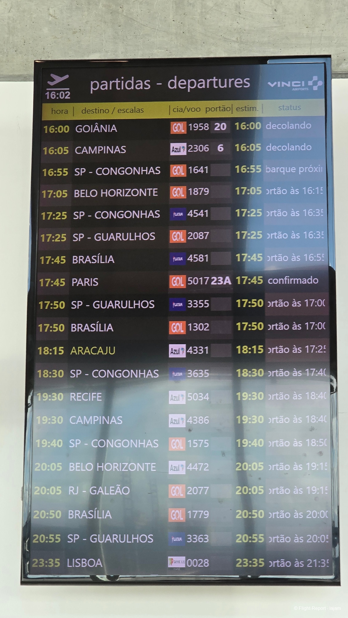 Direction les départs internationaux. Deux vols internationaux : Paris et Lisbonne avec TAP. 4h d’attente