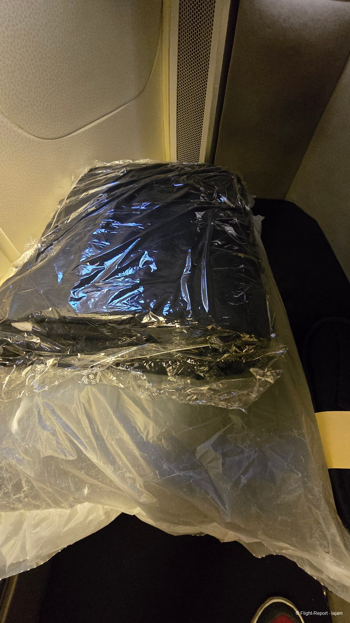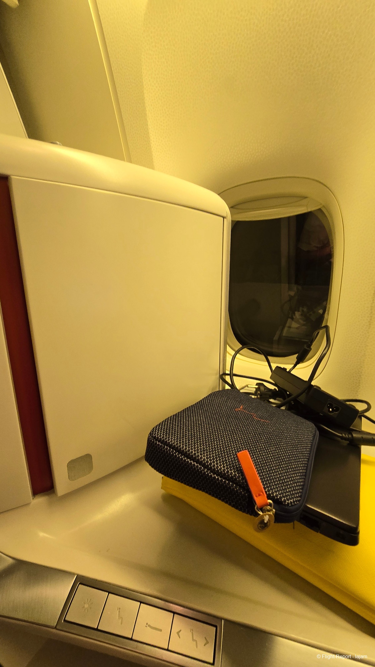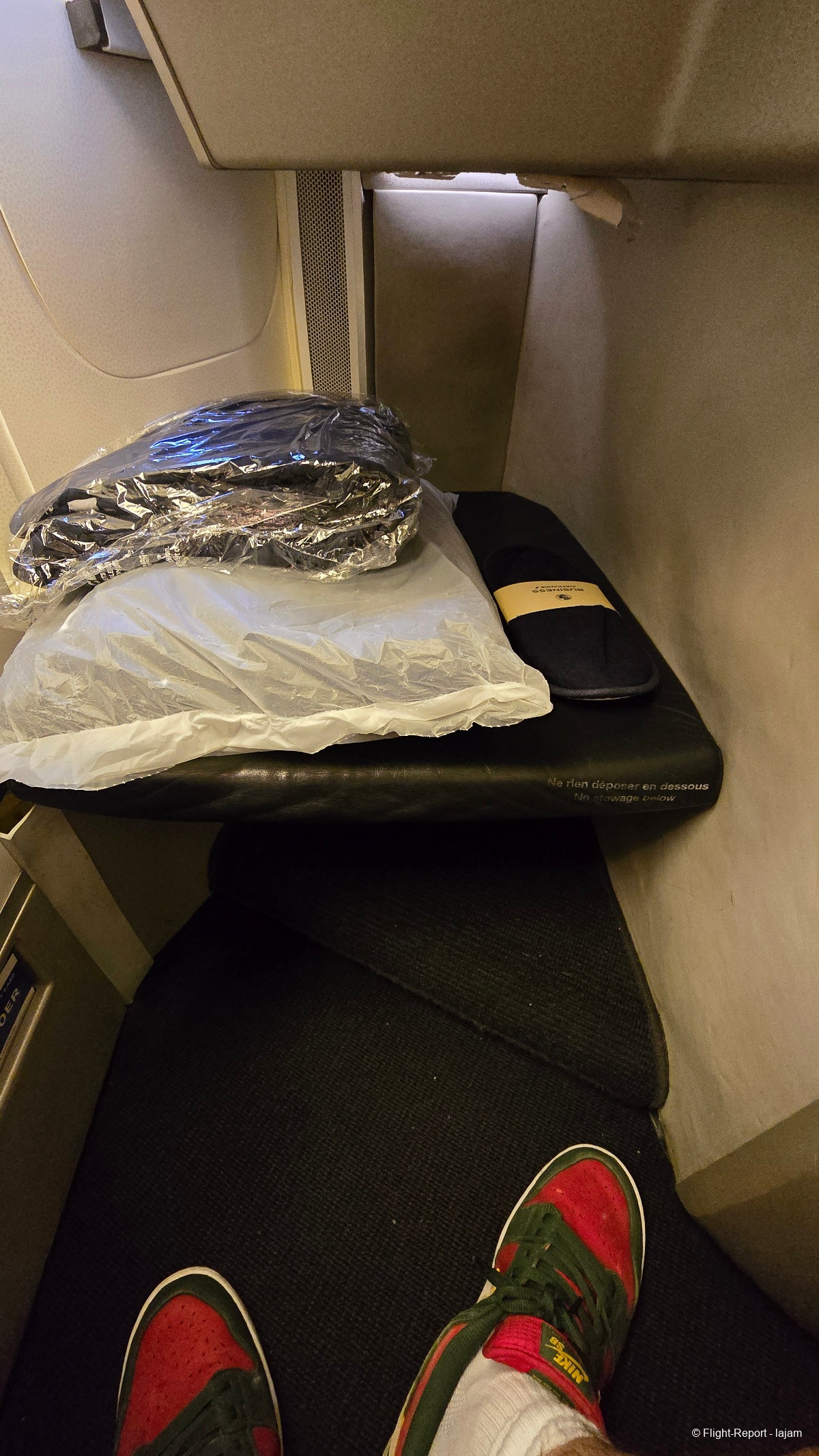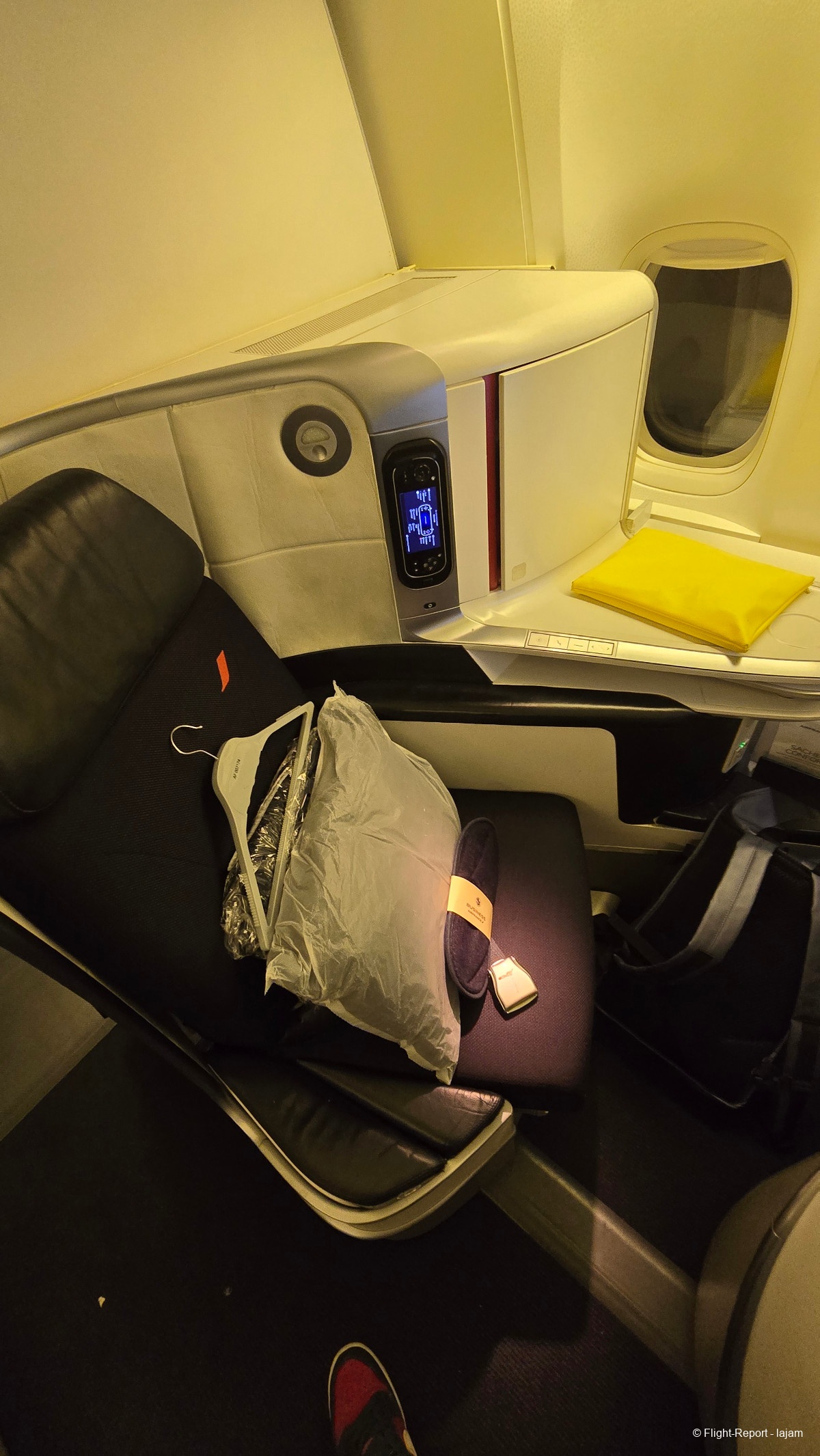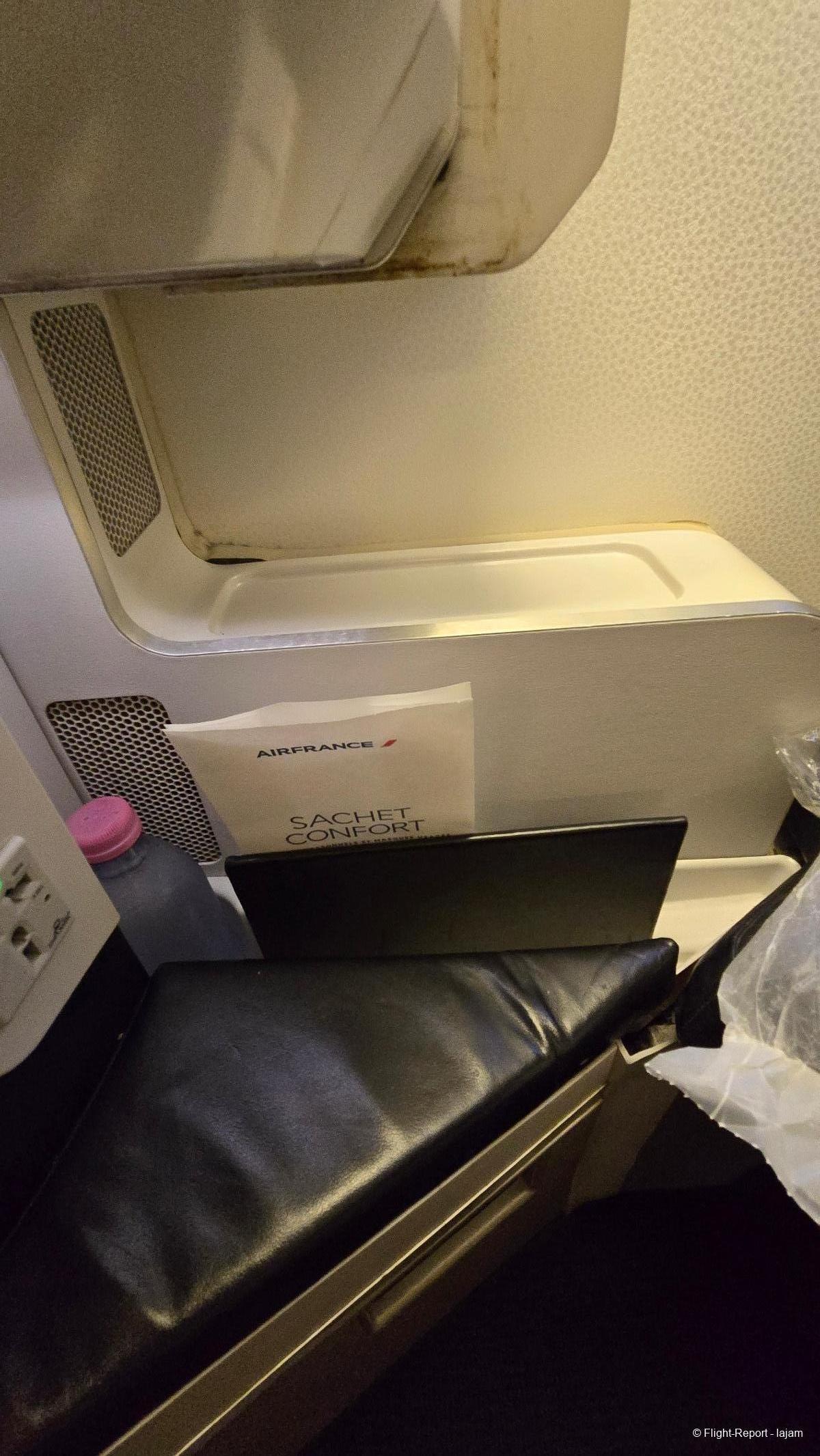 J'arrive à mon siège, que je n'avais pas eu l'occasion de prendre depuis longtemps. Fatalement, la première impression est bonne. Le siège est agréable. Mais la cabine vieillit . Elle est moyennement propre …….. Pas de sur-matelas.