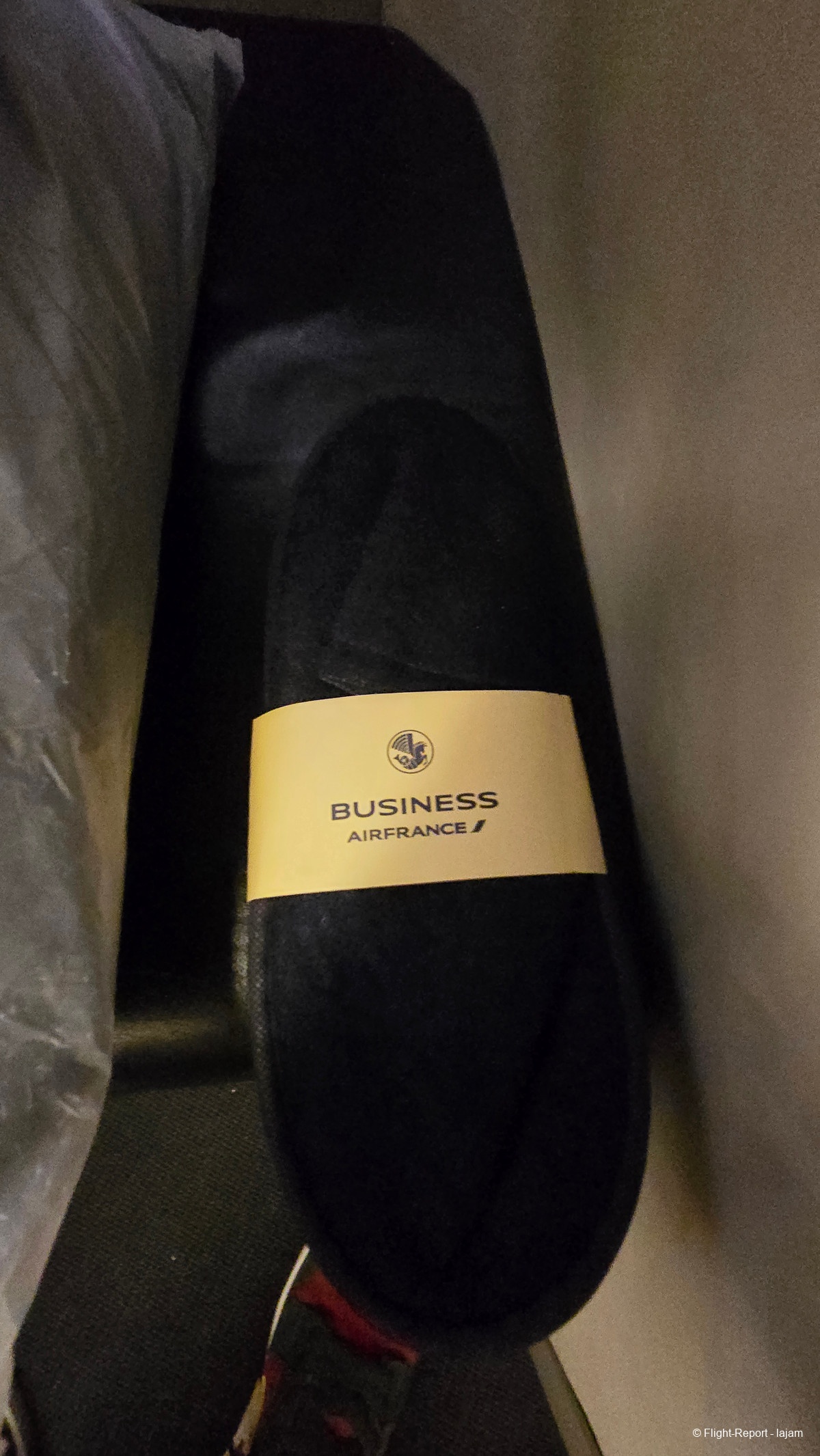 La cheffe de cabine s’est présentée en distribuant la trousse. Valérie.